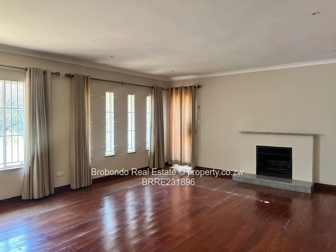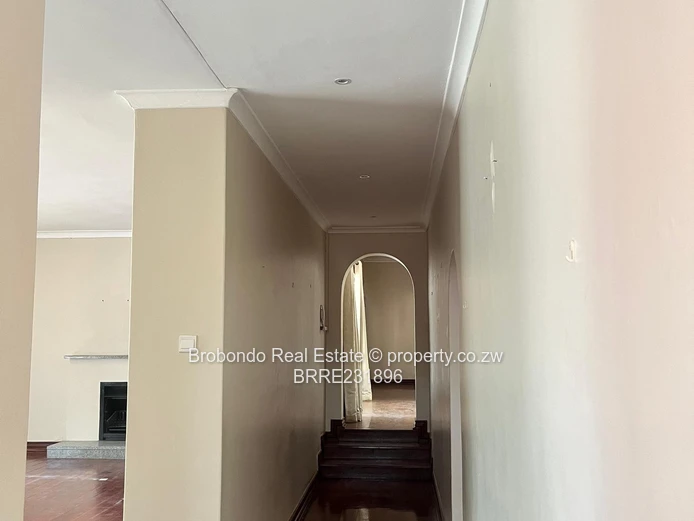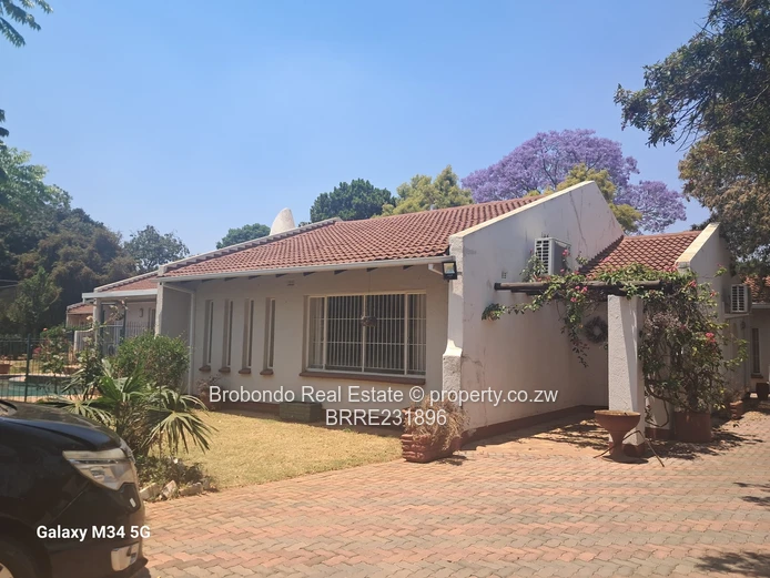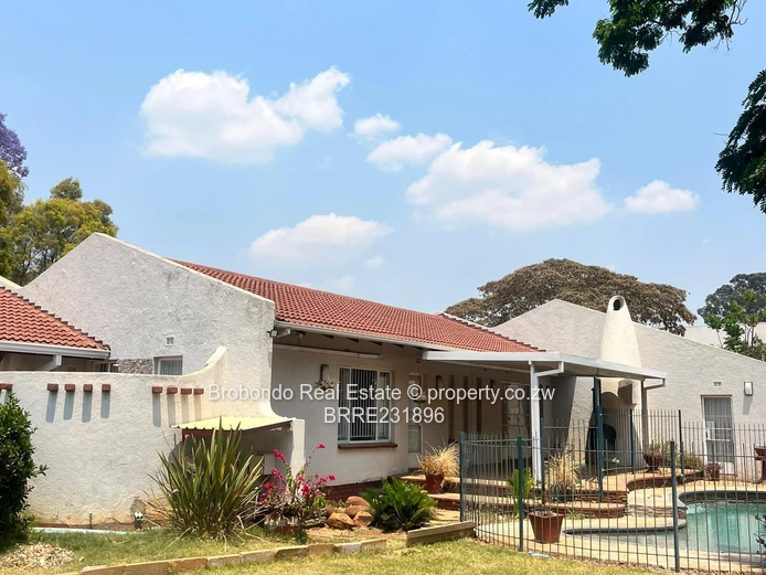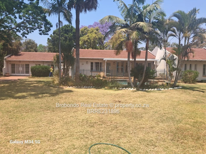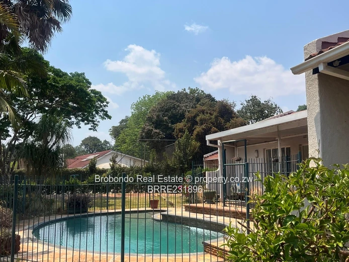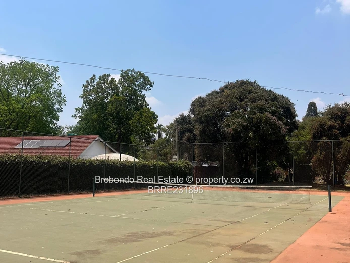 Brobondo Real Estate has the pride to offer this solid and secured property located along Breach Road close to Borrowdale Road and and less than a kilometre to Sam Levy Shopping Centre, the property comprises of 5 beds, three beds with ensuite's including the master bedroom, spacious lounge x 2, dining area, fitted kitchen, scullery, guest wing with ensuite, paved driveway, functional swimming pool, tennis court, borehole and 10000l water tank, yard well maintained with palm trees, car shed. It also comes with a 3 roomed staff quarters at the back, generator rooms, walled and gated.