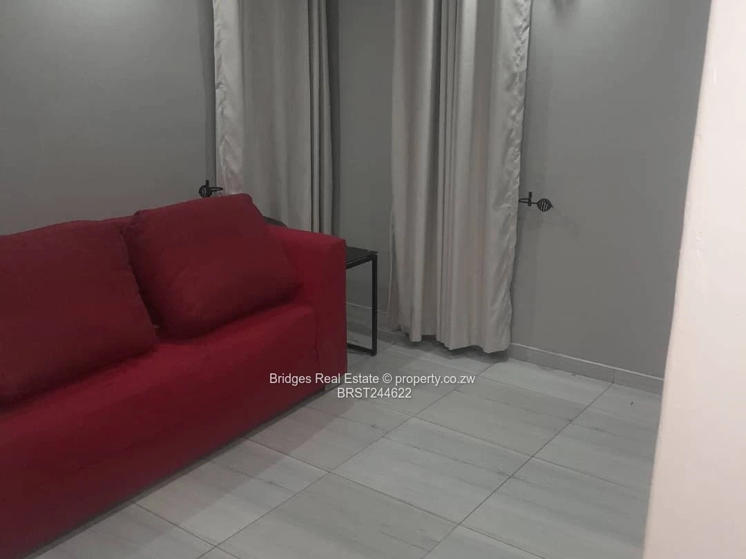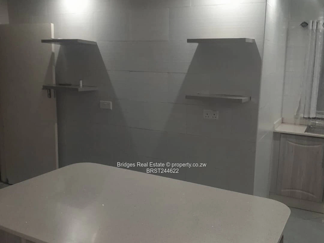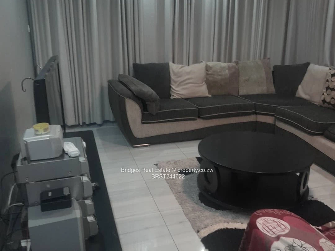 Welcome to this newly built vacant 3 Bed house to let in the picturesque suburb of Rockview, Harare. This modern residence features an inviting living room, adorned with a large U-shaped sectional sofa and a sleek media console, set against contemporary decor that offers both comfort and style.