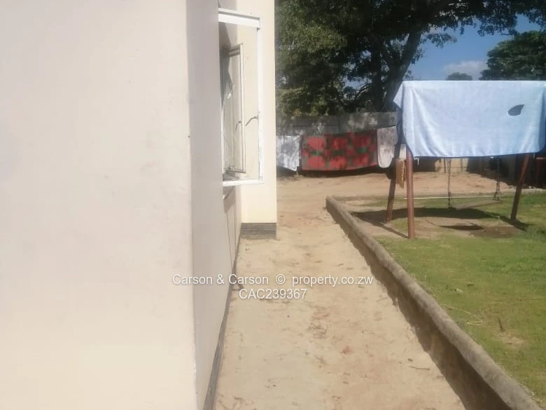 Exterior details include paved walkways around the house, a small neat lawn and open yard ideal for gardening or childrens’ play. Windows are fitted with security bars and the property benefits from a visible ZESA meter box and a reliable ZESA connection, ensuring steady power supply. The home has a functional, lived-in feel and is ready for immediate occupation.