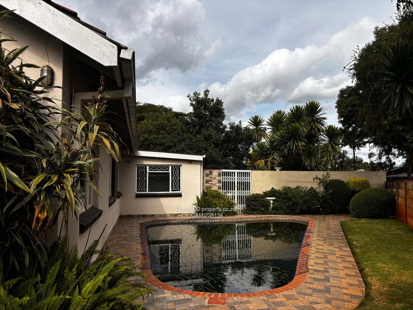 Family friendly house in Hillside with 5 bedrooms main bedroom ensuite, dining, lounge, fitted kitchen, borehole, solar system, razor wire, swimming pool, self contained 1 bedroom cottage, entertainment area and breathtaking garden