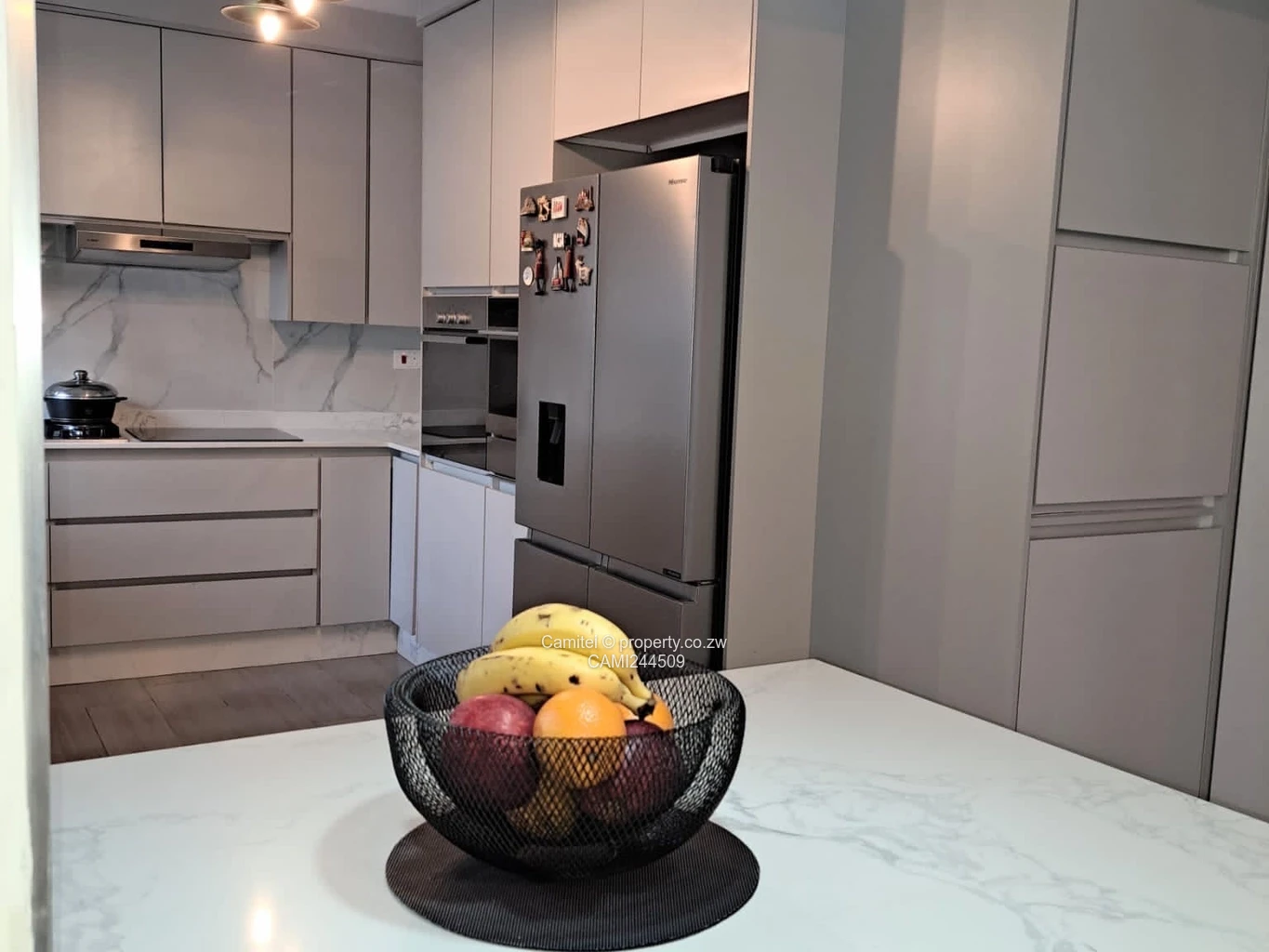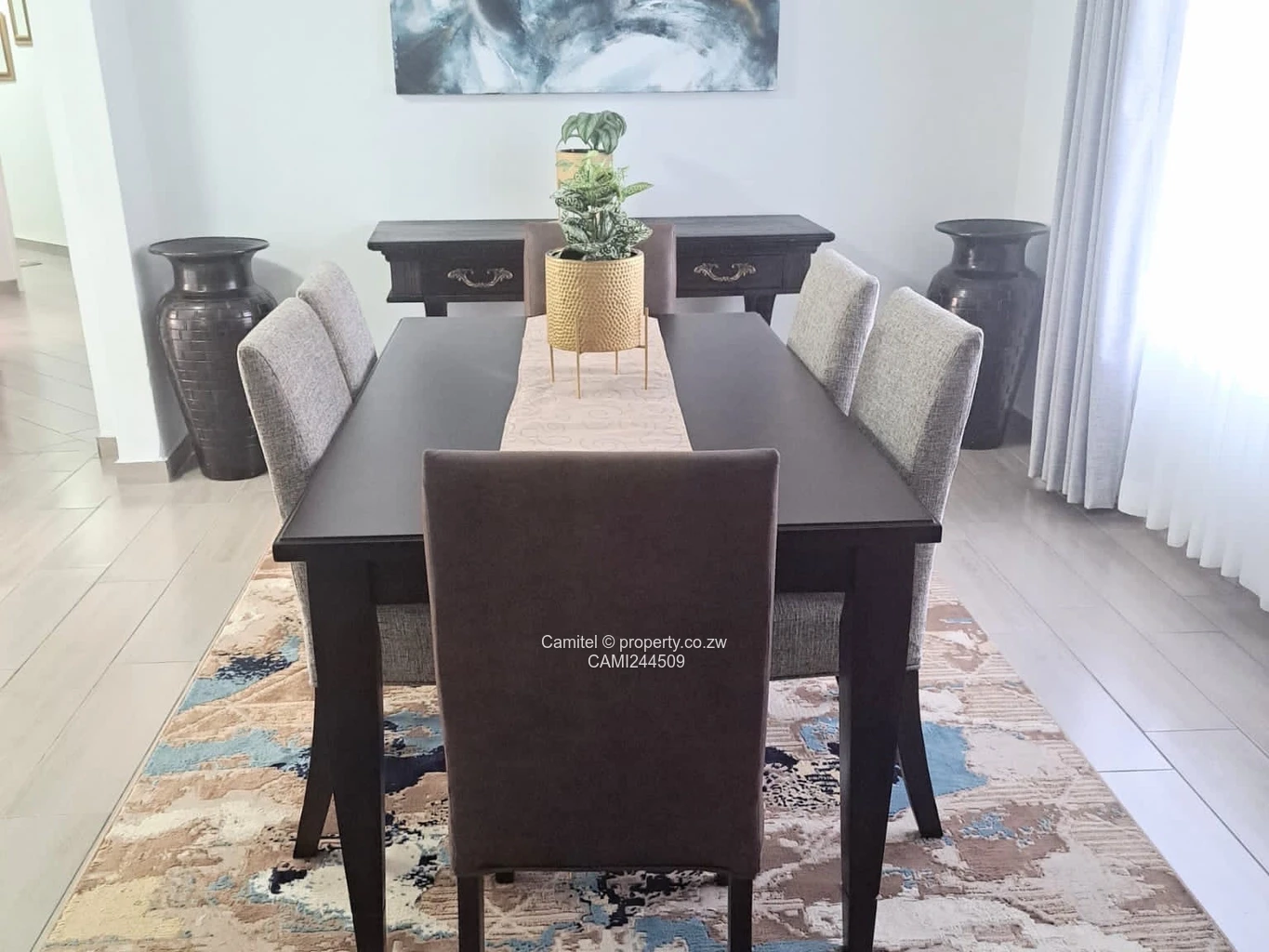 Beautiful fully furnished 4-bedroom, 4-bathroom home for rent in the prestigious Borrowdale Brooke, Harare North. Set on a generous 2,500 m² plot with 540 m² of living space, this turnkey residence blends contemporary comfort with tranquil, leafy surroundings. As seen in the photos, the inviting living room is appointed with a plush grey sectional, accent chairs and a glass-topped coffee table, drenched in natural light from large windows and finished with tasteful soft furnishings. The elegant bedrooms feature modern headboards and built-in wardrobes, offering restful private spaces. Bathrooms are finished in bright, marble-effect tiles and fitted with a freestanding bathtub, glass-enclosed showers and sleek vanities for a spa-like feel. Practical comforts include a borehole for reliable water supply and full furnishing throughout, making this home move-in ready. Large grounds provide scope for outdoor entertaining, secure parking and lush garden landscaping. Located in a secure, sought-after northern suburb with easy access to key amenities, this property is ideal for families or executives seeking style, space and convenience. Contact to arrange a viewing.