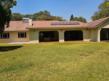With four bedrooms, each fitted with built-in cupboards. The first bedroom has its own bathroom and toilet, while the remaining rooms share an additional shower and toilet. A separate guest wing provides a private ensuite room equipped with its own solar geyser. The property also includes a four-roomed staff quarters, complete with a solar geyser, offering comfortable accommodation for live-in staff.