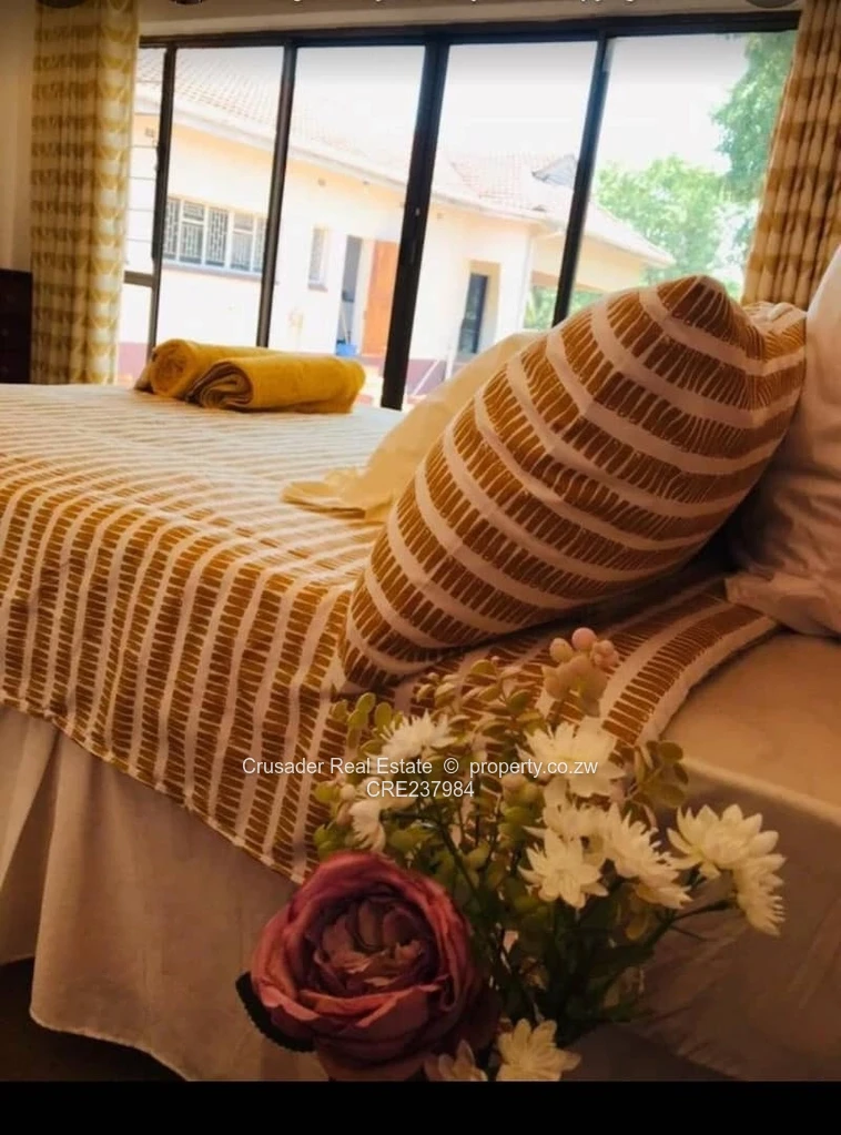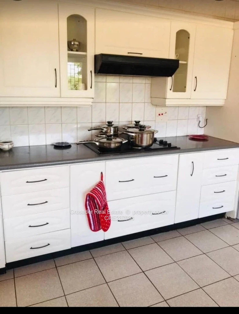 A luxurious 4 bedroomed house with 1 bedroom with an ensuit , 3 bedrooms with built-in cupboards , 3 bathrooms with tubs and 1 with a shower and double lounges for relaxation and entertainment with a bar , Also includes a secure garage and 2 carpots with a spacious garden and a solar backup.