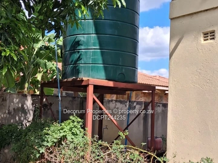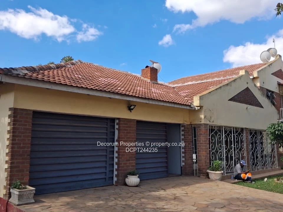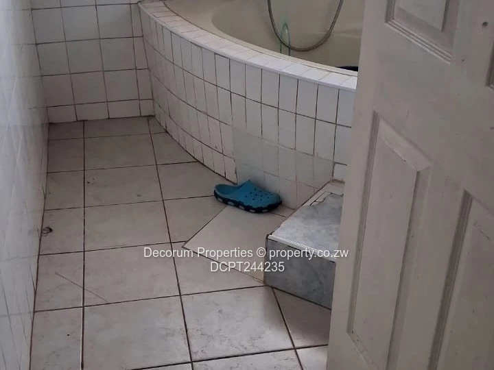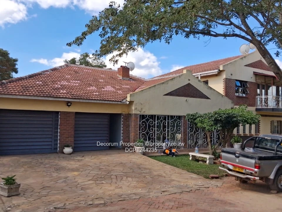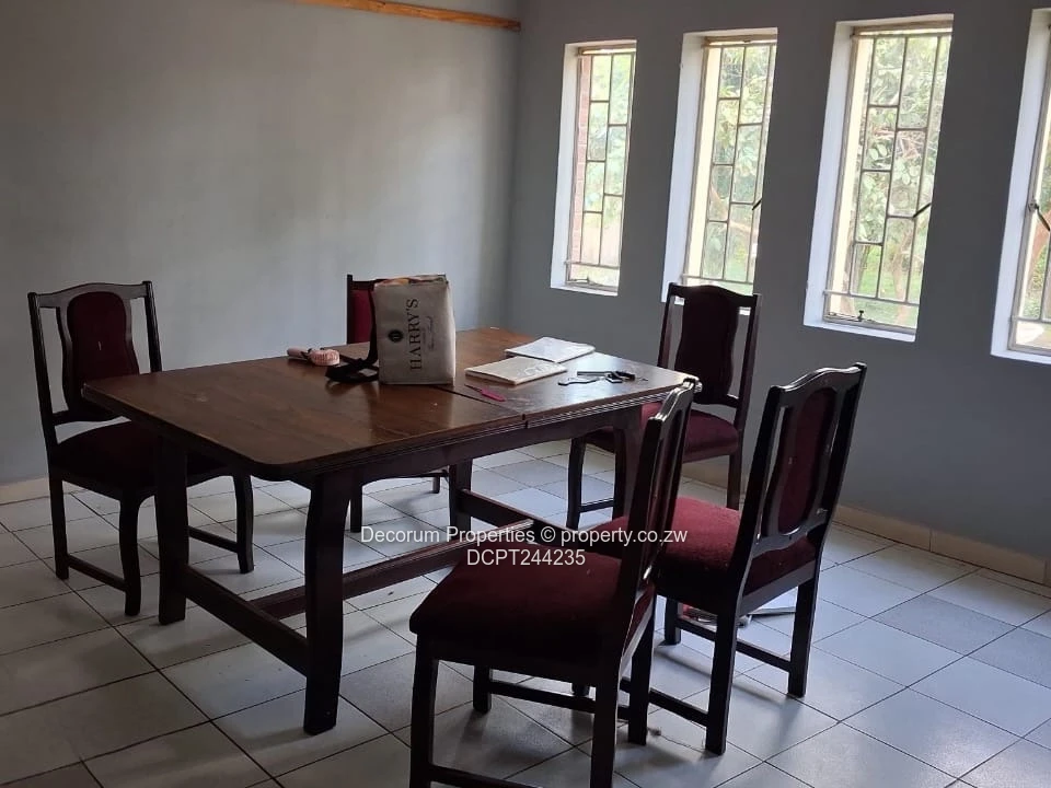 Spacious 6-bedroom Double Storey home, for rent in sought-after Riverside Park, Ruwa. As seen in the photos, the property sits behind a secure paved yard with mature trees and a large driveway leading to a double/three-bay garage with roller doors — perfect for several vehicles and extra storage. The exterior shows a well-established character home with tiled roof and covered veranda, while interior images reveal generous tiled living and dining areas, a bright kitchen with good natural light and practical layout, and bathrooms with bathtubs and showers. Security features include burglar bars and gated entry visible at the front. A major advantage is the on-site borehole guaranteeing reliable water supply. Ideal for extended families or professionals needing extra rooms for home offices, this home combines comfort, space and peace of mind in a popular Ruwa neighbourhood. Arrange a viewing today to fully appreciate the layout and garden. Rental $800 per month