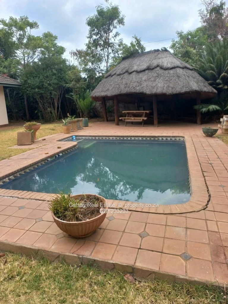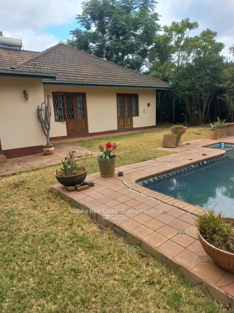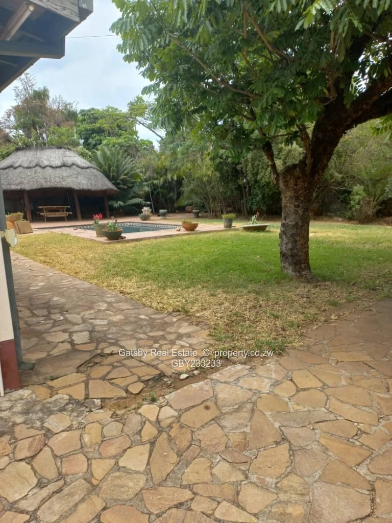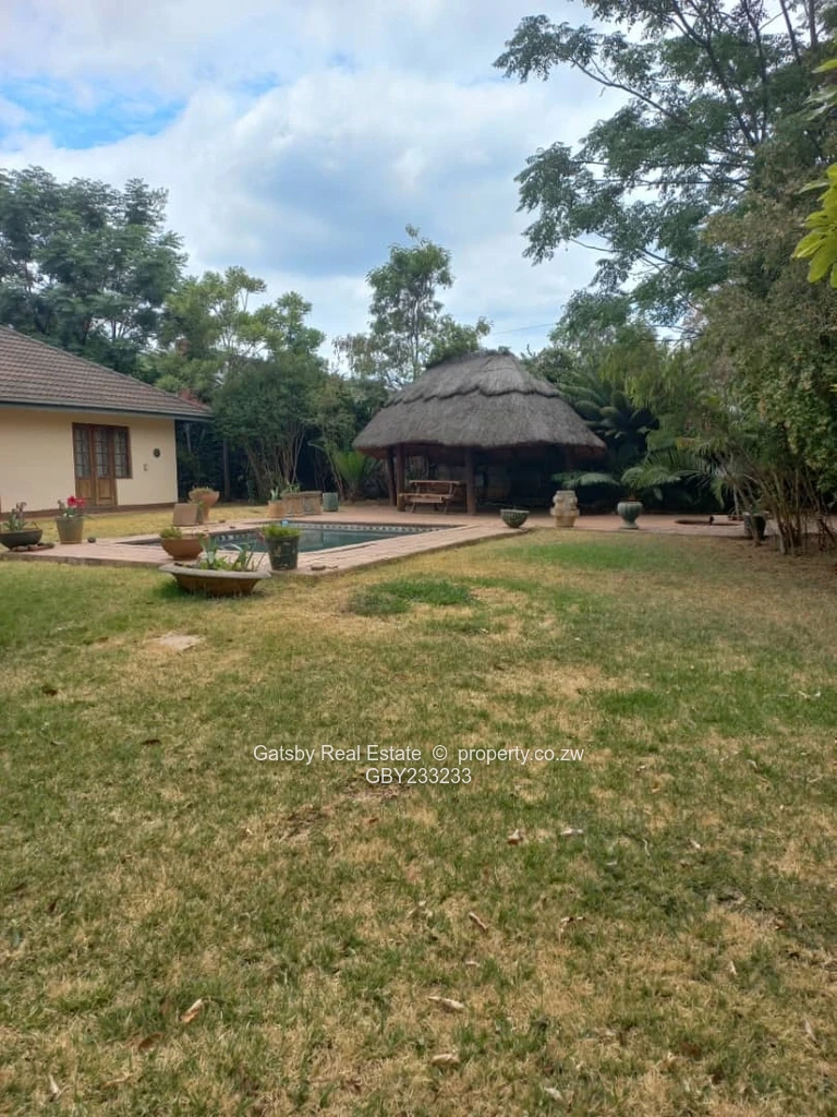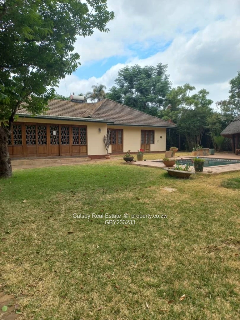 It consists of fitted kitchen dinning room study living room with a fireplace tv lounge opening out to a swimming pool 3 beds 1 bath guest toilet double garage triple carport borehole storeroom staff accommodation.