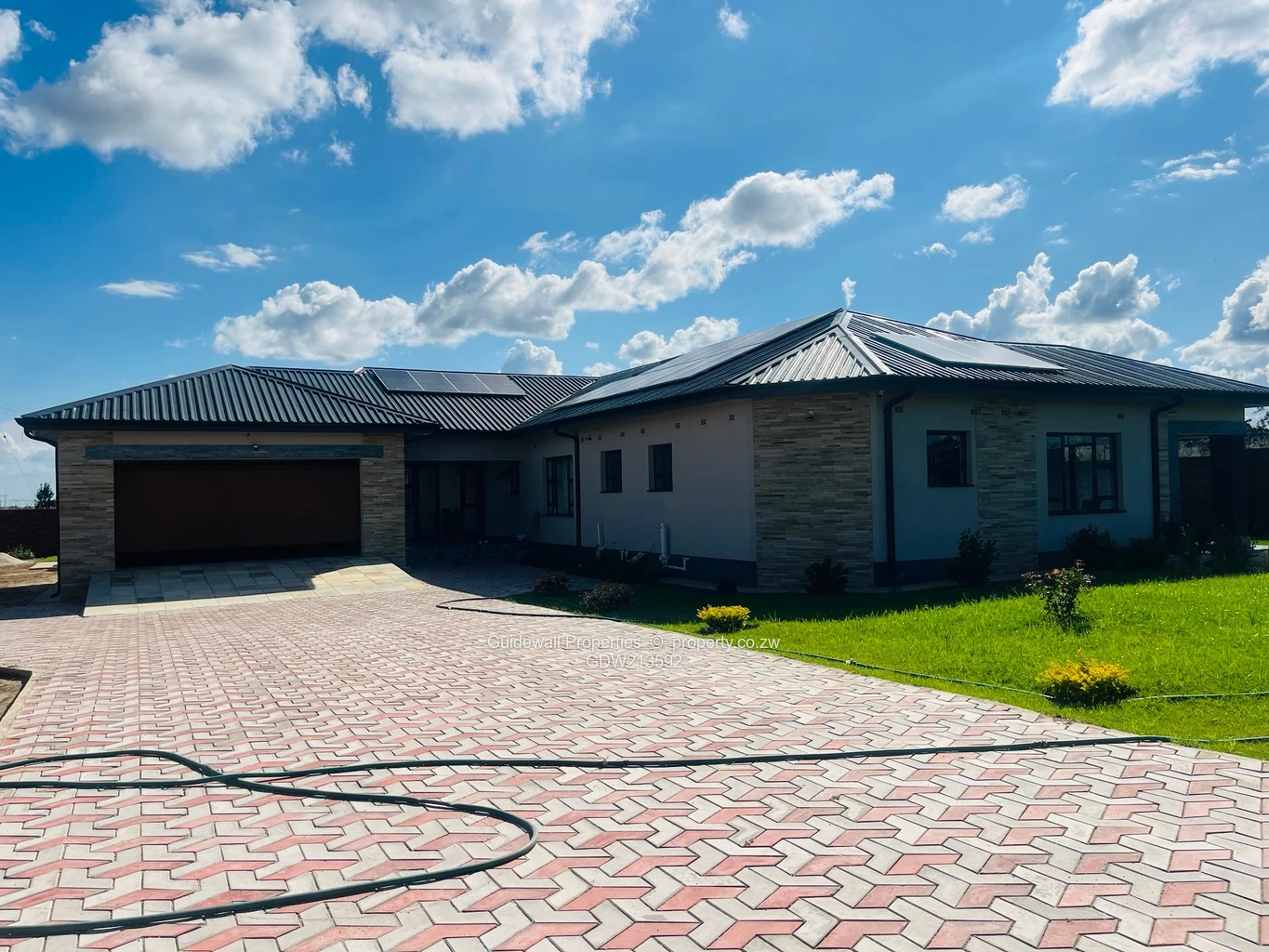 Enjoy the luxury of a borehole and four water tanks two dedicated to household use and two for water harvesting. The beautifully landscaped garden features vibrant flowers and trees that require special attention, creating a serene outdoor oasis. The property boasts a garage accommodating two vehicles, ample paved space for parking, and a solar backup system that powers essential appliances like fridges. Safety is paramount with an electric gate, dual access points, a guard room, and comprehensive security measures including an electric fence and nine CCTV cameras strategically placed throughout the premises, fire alarm, fire extinguishers also available. Stay connected with reliable internet options from Telone and Buddie. Experience peace of mind in this walled haven designed for modern living!. Not inclusive of the cottage, it has asperate meter, toilet bathrooms.