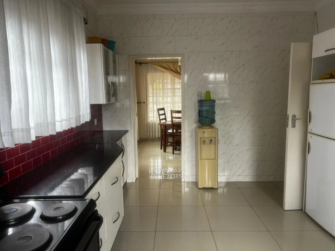 Charming family house for rent in Avonlea, Harare West — a spacious single-storey home on a 600 m² plot with 350 m² of living space. This 3-bedroom, 2-bathroom property offers comfortable family living with generous rooms and built-in wardrobes in the bedrooms. As seen in the photos, the neat white façade with tiled roof and low hedge creates great street appeal; the bright kitchen has modern white cabinetry, black countertops, a microwave and fridge in place and a red tile splashback; the sunlit enclosed porch with sheer curtains and security bars provides a peaceful reading or play space. The private back garden is lawned with banana plants, a clothesline and room for children to play or for entertaining. Reliable water supply is guaranteed by a borehole, and the property presents potential for small improvements or tailoring to your family’s needs. Ideal for a professional family seeking convenience and a secure, well-located home in Avonlea — arrange a viewing today to see this inviting house in person.