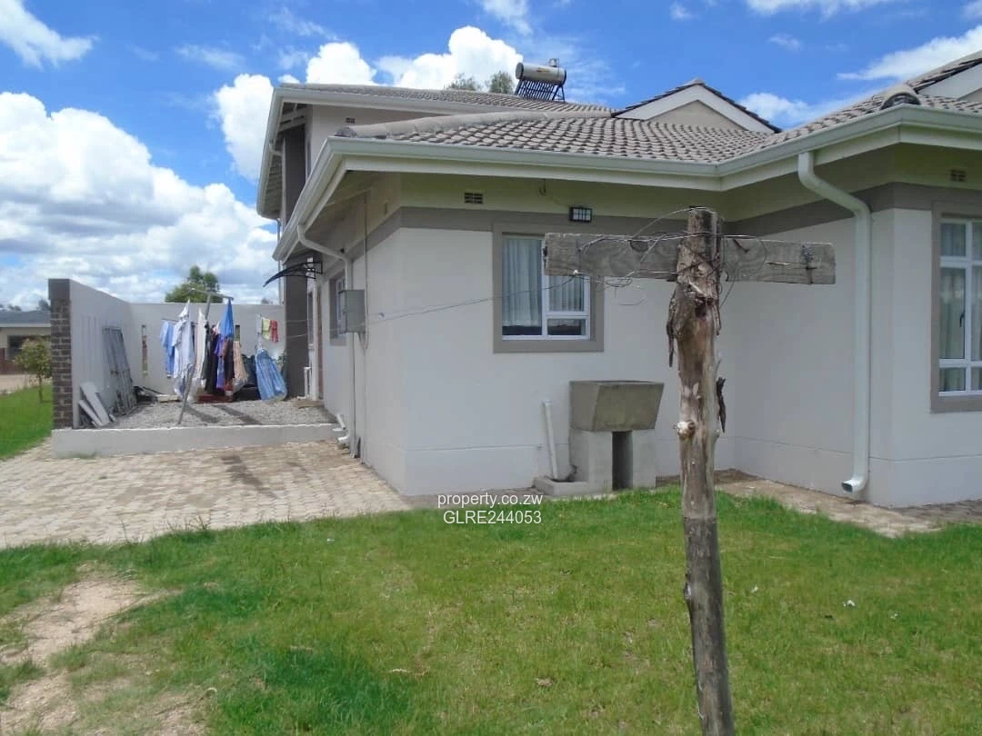 Spacious 4-bedroom, 2-bathroom family home for rent in Arlington, Harare South — set on a generous 780 m² stand with approximately 500 m² under roof. This attractive two-storey house combines modern finishes with practical family living. As seen in the photos: a double garage with roller doors and paved driveway, a stone-clad porch and upstairs balcony that floods the front rooms with light. The property features built-in bedroom wardrobes, a neat external laundry area with a clothesline and utility basin, well-kept lawns and low-maintenance grounds. A solar water heater on the roof and an on-site borehole ensure reliable hot water and water security. Ideal for a family seeking comfort, convenience and a secure suburban setting in Harare South. Contact now to arrange a viewing.