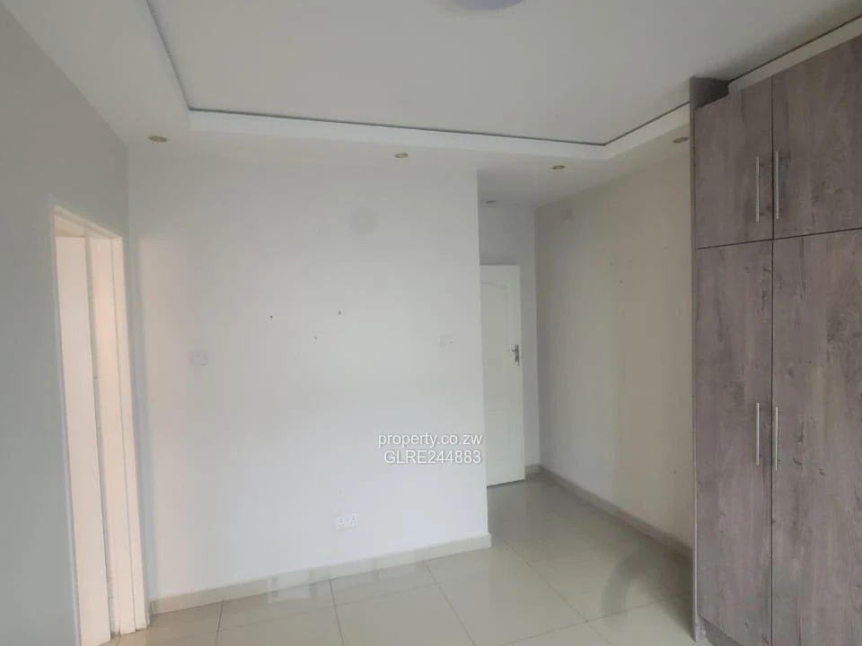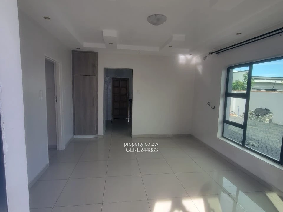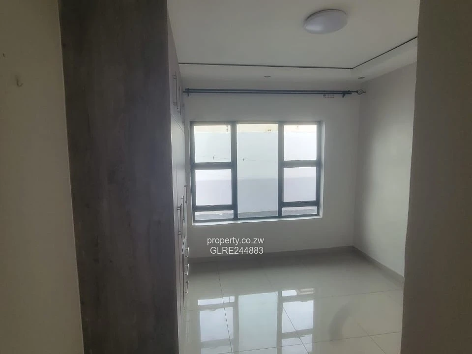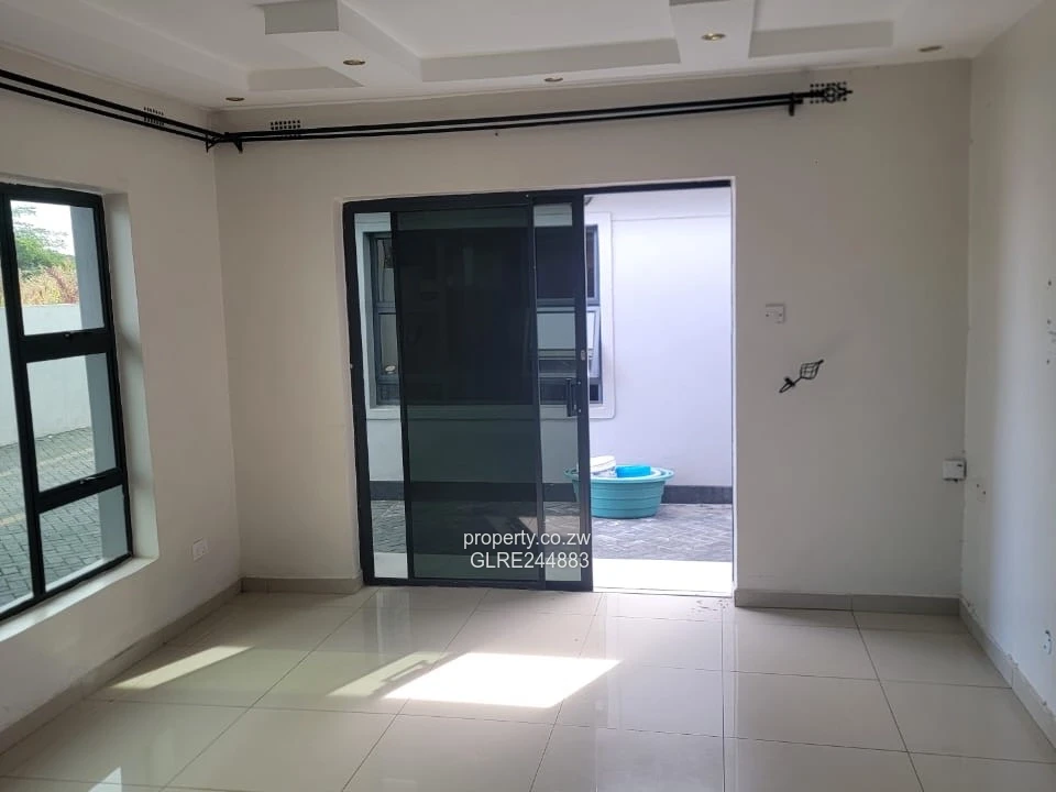 Bright, modern 3-bedroom, 2-bath family home for rent in Madokero, Harare West. Set on a secure 600 m² stand with 350 m² of well-finished living space, this freshly painted single-storey house features generous bedrooms, two tiled bathrooms (shown), large aluminium-framed windows that flood rooms with natural light, and a neat covered entrance. The exterior presents a paved compound with easy off-street parking, clean gutters and a well-maintained perimeter wall for privacy. Practical extras include a borehole for reliable water supply, visible roof-mounted water tank and JoJo tank, installed electrical connections and a tidy service area ideal for laundry. The property’s contemporary finishes and low-maintenance yard make it perfect for a family or professionals seeking comfort and convenience close to local amenities and transport routes. Arrange a viewing today to experience this move-in-ready home.