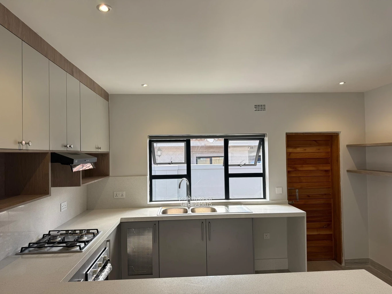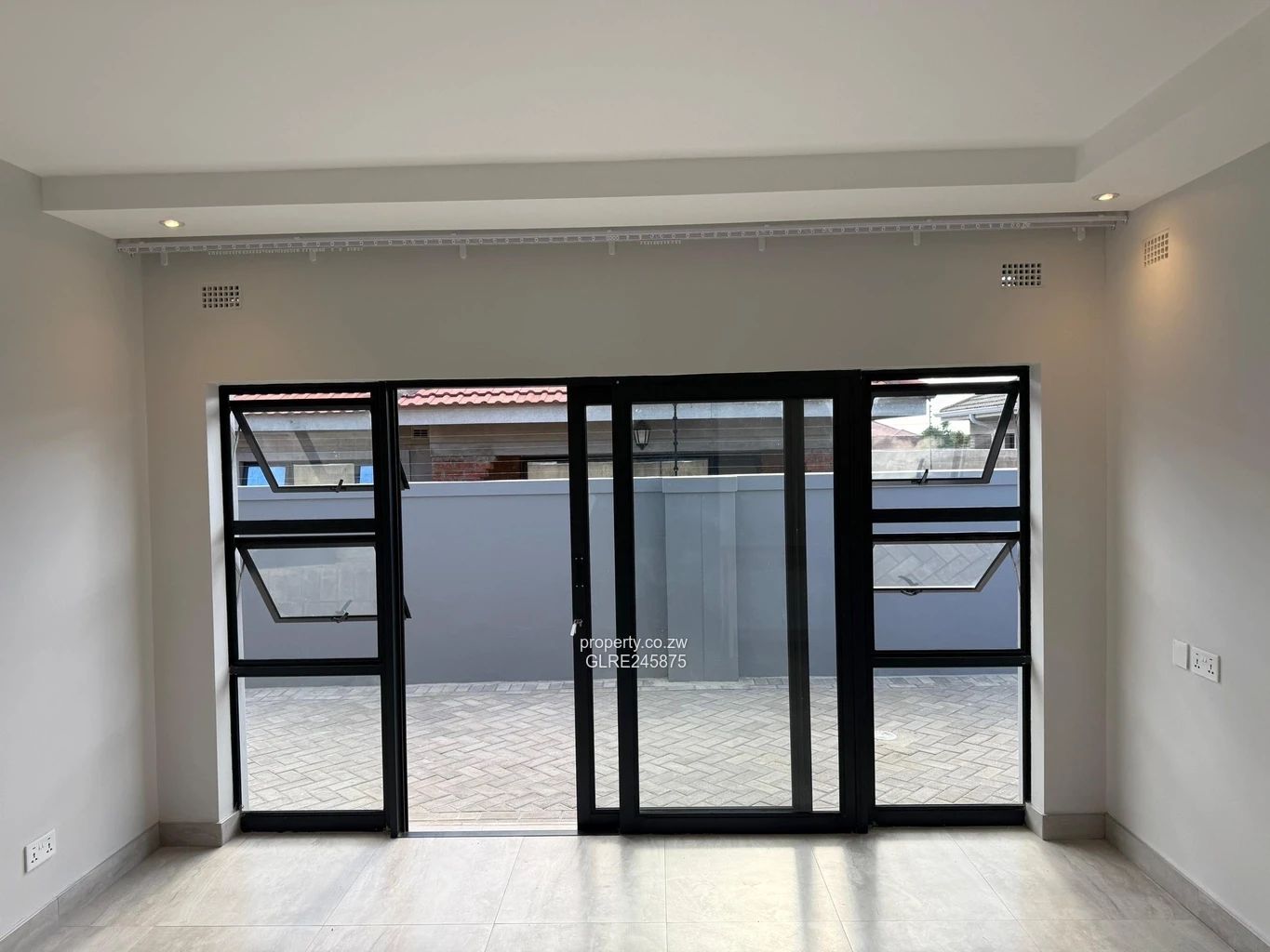 Modern 3-bedroom, 2-bathroom house for rent in Mabvazuva, Ruwa — a stylish, secure home on a 400 m² stand with 300 m² of thoughtfully finished living space. The street-front photo shows a crisp grey façade with horizontal slatted privacy screens and low-maintenance landscaping; behind the gate a paved courtyard and convenient parking create a low-upkeep outdoor space. Inside, photos reveal a bright, long hallway leading to an open-plan living area with large sliding glass doors that flood the home with light and connect indoor and outdoor living. The sleek kitchen features neutral cabinetry, a double sink, built-in oven and gas hob, plus ample counter space for everyday cooking. Bedrooms are well-proportioned with quality finishes and the two bathrooms are contemporary and practical. Reliable water supply is provided by an on-site borehole. Ideal for families or professionals seeking modern comfort, security and low-maintenance living in Mashonaland East. Arrange a viewing today to experience the finish and flow shown in the images.