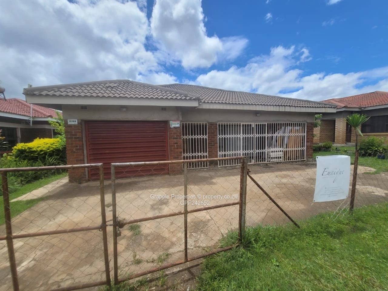 3 bedroom house with main en-suite, lounge, dining area, built-in cupboards, lock-up garage, fenced and gated.
