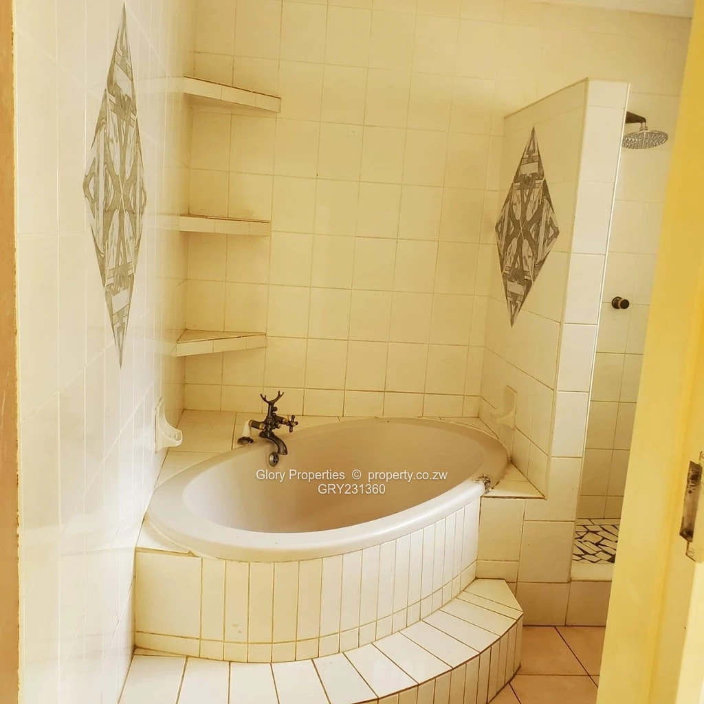 Available is a vacant property which is approximately 1. 5km away from the Westgate round about , along Old Mazowe Road. A 4 bedroom house, main with walk in closet for ample storage and en-suite with jacuzzi tub.