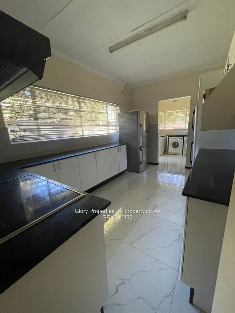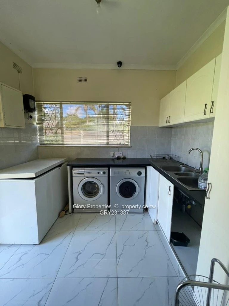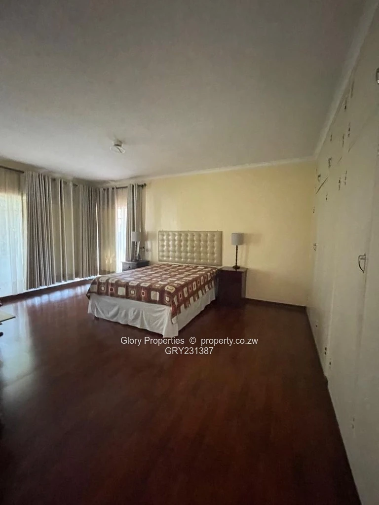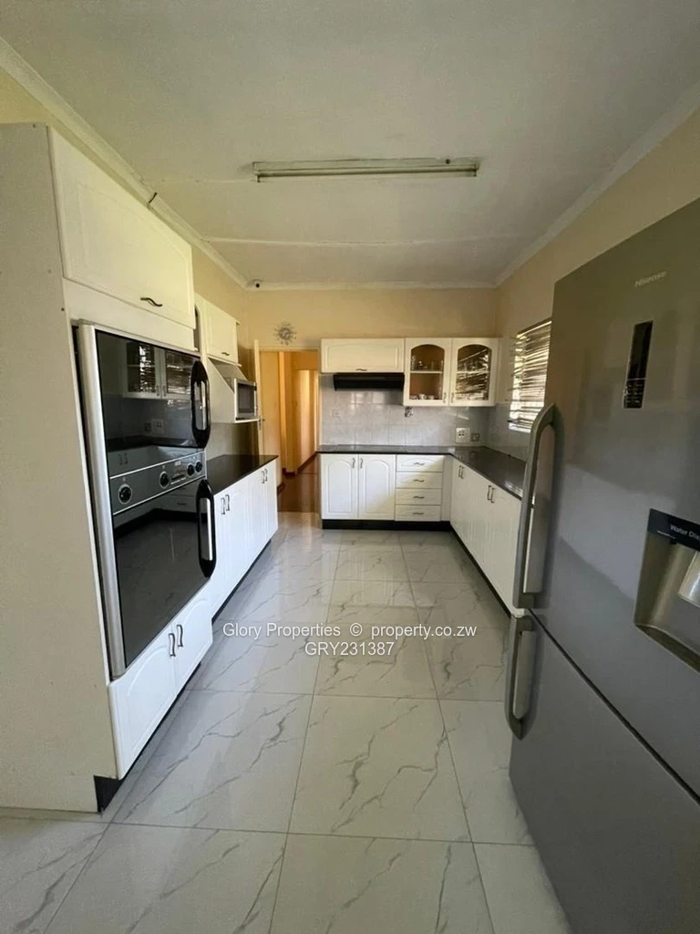 5 bedrooms, 3 bathrooms, (2 bedrooms with en-suite). Very spacious main bedroom with a walk in dressing area ensuite and interleading balcony. All bedrooms have ceramic tiles and built-in cupboards. Entrance hall leading into a spacious living area, second lounge with open plan dining area leading into a private office or study. The property also offers a modern fitted kitchen with granite stone counter top, fitted hob and oven, interleading scullery area.