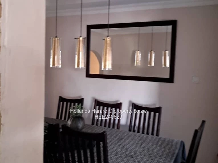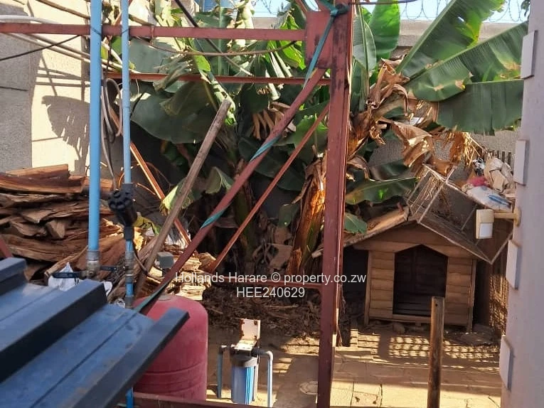Maranatha 200m from Harare drive; 4 bedrooms 2 with en-suite plus walk in closet for the other one; dining & lounge; library room; kitchen plus pantry room; will be partly furnished; mukwa dining room suite; ; double car port; motion sensors both outside and inside; security cameras; guard alert reaction security team onboard; remote security monitoring as well; Zol Wi-Fi; borehole; 3kva solar needs batteries but in place provision to power the house and charge the solar batteries on generator in place with changeover switch; Durawall 2.6m high with razor wire; double lock up garage, neat cage to do 100 broilers plus provision to do road runners as well. Rent is inclusive of City of Harare bill