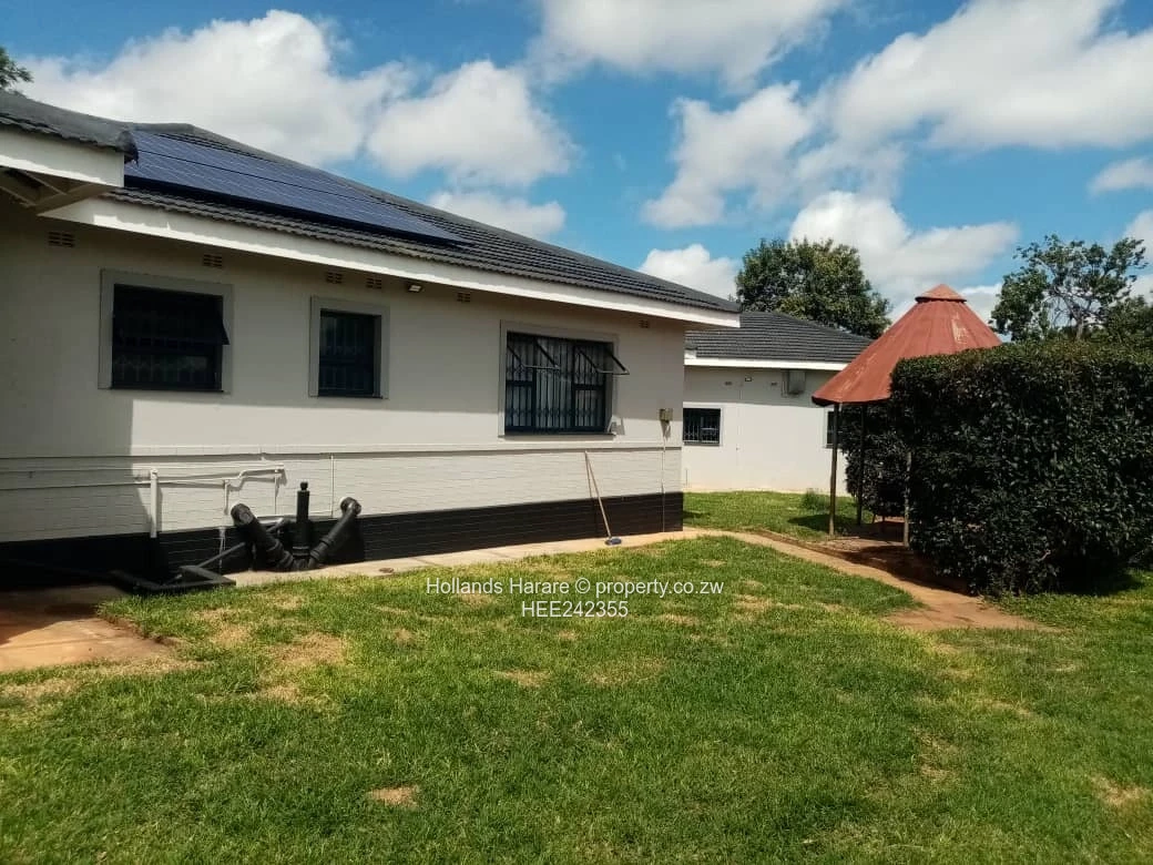Greendale Queen Elizabeth Road. 3 beds main en suite open plan lounge dining kitchen hob and oven secret pantry guest wing lounge small kitchen 1 bed ensuite, double garage with 1 storeroom, domestic quarters on an acre borehole, beautiful garden walled 3 sides electric gate