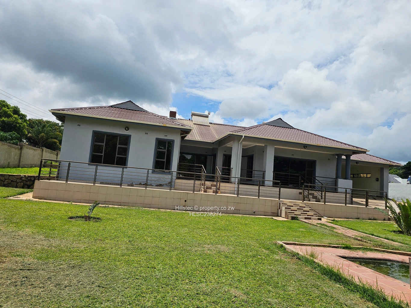 A spacious 5 bedroomed house with 2 ensuite bathrooms, spacious and fitted kitchen, open plan lounge and dining room, scullery, storeroom, guest toilet, combined bathroom, toilet and shower, double lock up garage, 2 roomed staff quarters, swimming pool, borehole, walled and gated.
