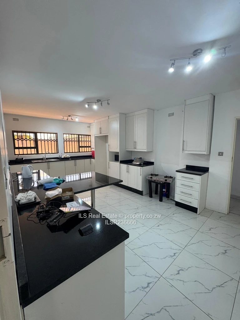 This well-maintained 4-bedroom house to let near Westgate, Harare offers generous living space and excellent amenities, ideal for family living or investment. The home features a double-sided main lounge, a second lounge with sliding doors to the outdoors, and an open-plan dining area with recessed lighting and fireplace provisions. The fitted kitchen provides ample cupboard space.