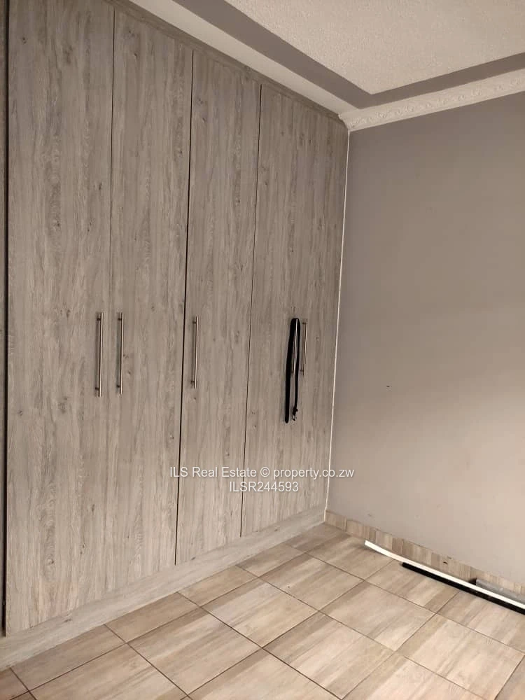 Well-presented 3-bedroom house for rent in Fidelity, Harare South — ideal for professionals or a small family. Set on a 240 m² stand with 180 m² of living space, this home is secure, low-maintenance and move-in ready. As pictured, the master and bedrooms feature tiled floors and neutral, fresh paint that maximises natural light; built-in wardrobes with a contemporary wood-grain finish provide generous storage (see wardrobe photo). The generous main en-suite is fully tiled with a practical shower area and basin, offering easy upkeep (see bathroom photo). Windows have security bars for peace of mind and the property is fully walled and gated; additional comforts include a large water tank, paved outdoor areas, an electric gate and reliable ZESA supply.