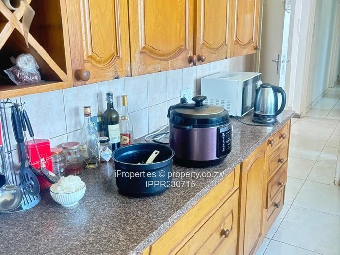 This spacious double-storey home in The Grange offers 7 bedrooms, including 2 with ensuites, 2 lounges, a dining area, a fitted kitchen with a walk-in pantry, and modern conveniences throughout. Outdoor features include a swimming pool, borehole with pressure pump and water tank, as well as a solar system for reliable backup power. The property is fully walled and gated with a remote-controlled electric gate for enhanced security. Additional accommodation is provided by a 2-bedroom servants’ quarters complete with a kitchenette, toilet, and bathroom.