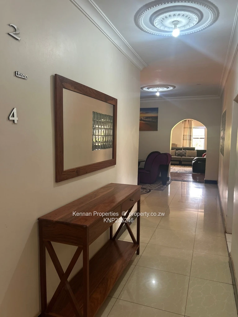 This impressive double-storey home offers generous, well-designed living spaces and excellent security features throughout. The ground floor welcomes you with a spacious entrance hall leading into a large main lounge and open-plan dining area, complemented by a modern, expansive kitchen with a walk-in pantry. A guest toilet and basin, along with a double lock-up garage with interleading door, complete the downstairs layout. Upstairs, the home features three bedrooms, including a sizeable master suite with a walk-in dressing area, dedicated baby room and full ensuite bathroom, plus two additional bedrooms, a family bathroom and an outside balcony. The property is secured with ClearView fencing, has a borehole, and is supported by a 10kVA solar system (tenant to supply their own battery), along with a manual gate. Please note that Wi-Fi, City of Harare bills and ZESA prepaid electricity are excluded from the rental, and there are no staff quarters.
