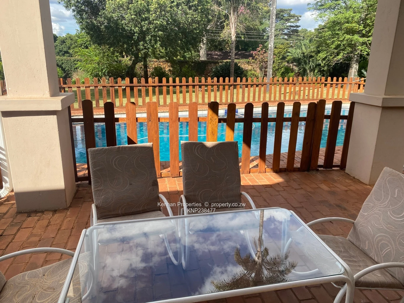 Covered verandah overlooking the swimming pool
