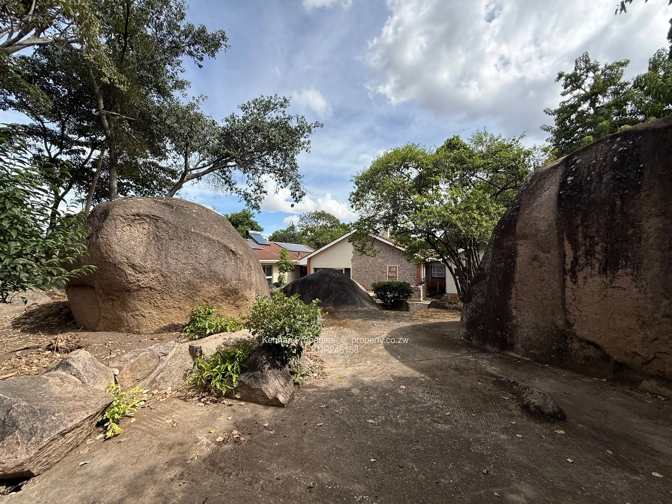 An attached three-bedroom cottage offers further potential for a spacious home office or guest accommodation (no subletting permitted). Additional features include a four-car lock-up garage, 2 roomed staff quarters, and a non functional swimming pool.
