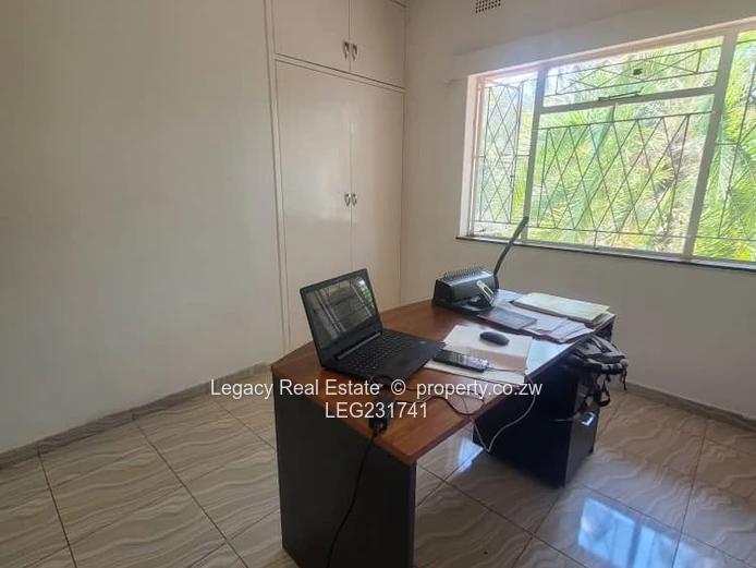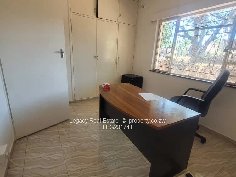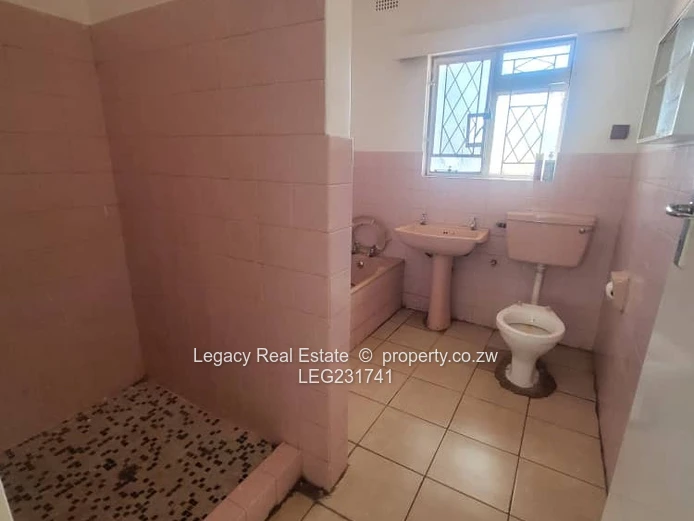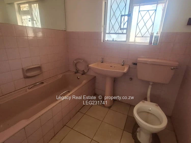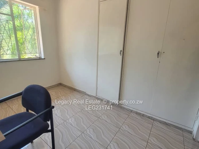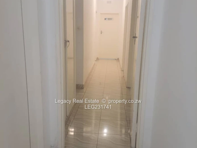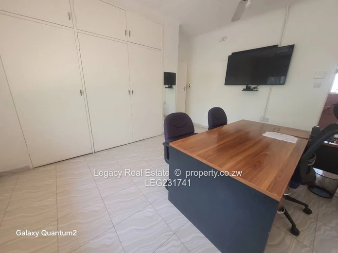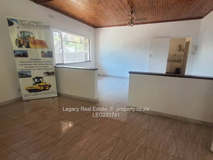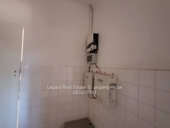 House to let in Greystone Park along Harare Drive with road frontage. The property features 4 bedrooms, including a main ensuite, a spacious lounge, dining area, and a modern kitchen. It comes equipped with a 5kVA solar backup system, a 5,000-litre water tank, and a 2-room staff quarters. Rent is US$2,000 per month with a deposit of US$2,000. Ideal for family or office use.
