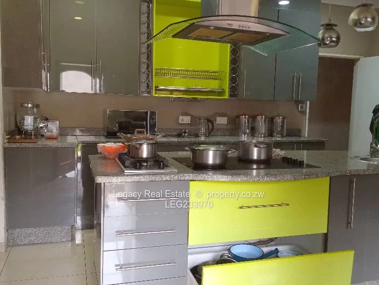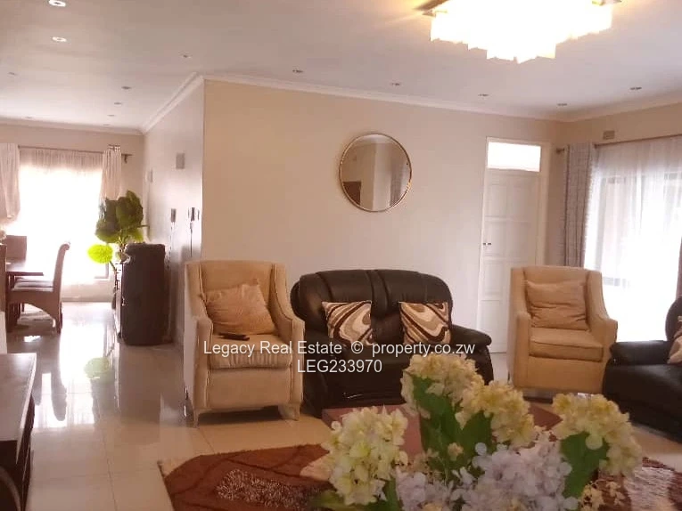 A beautiful and spacious 5-bedroom standalone house is available for rent in the secure and serene Arlington Estate. The home features two en-suite bedrooms, two common bathrooms, two lounges, a dining area, and a modern fitted kitchen with electric and gas stoves plus a scullery. It comes with a 10kVA solar system, prolific borehole, double lock-up garage, manicured garden, and 24/7 security with Safeguard rapid response. Available for occupation from 1 December. Rental is USD $2,000 per month.