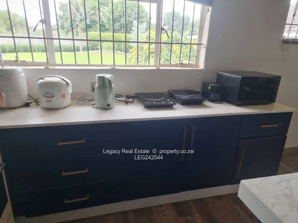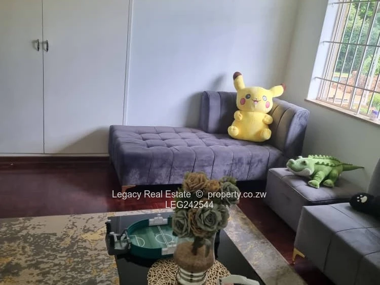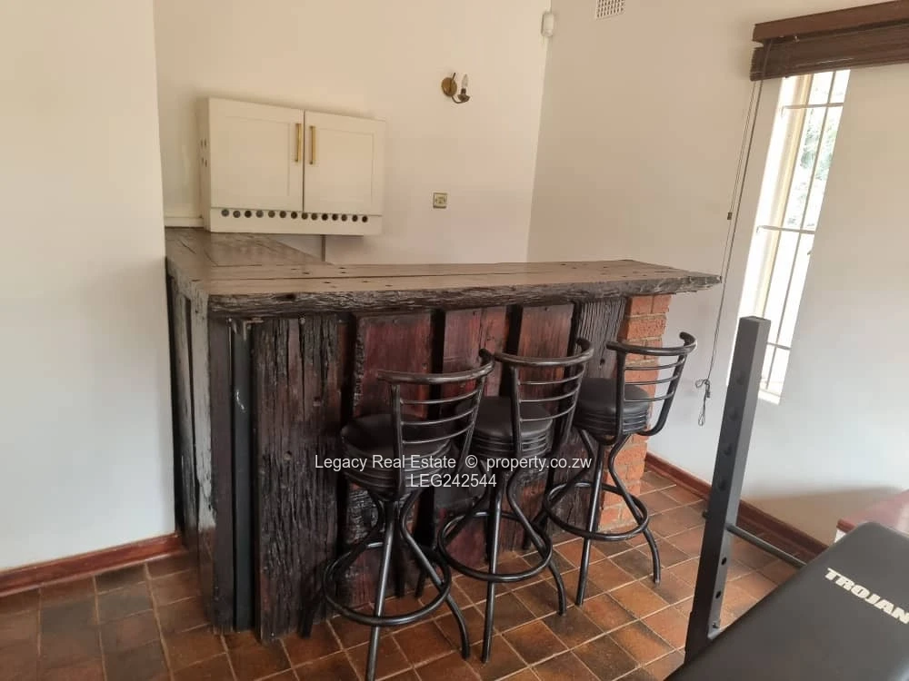 Executive property to let in Mount Pleasant located in the prestigious Golden Triangle. The home offers 4 air-conditioned bedrooms (main ensuite), a spacious lounge with fireplace, dining area, home office, and a modern fitted kitchen with scullery. Outdoor features include a swimming pool, gazebo, tennis and basketball courts, plus solar backup, solar geyser, 15,000L water tanks, garages, staff quarters, and full security. Rent: $3,000/month, viewing by appointment (mornings only