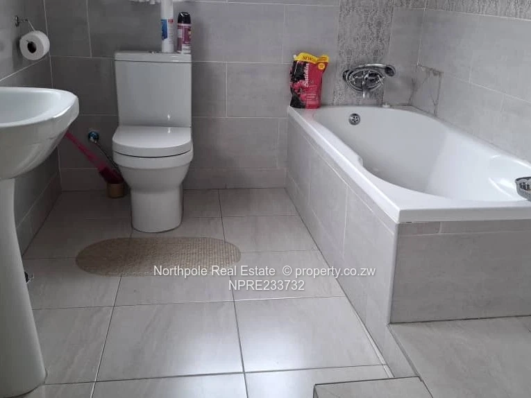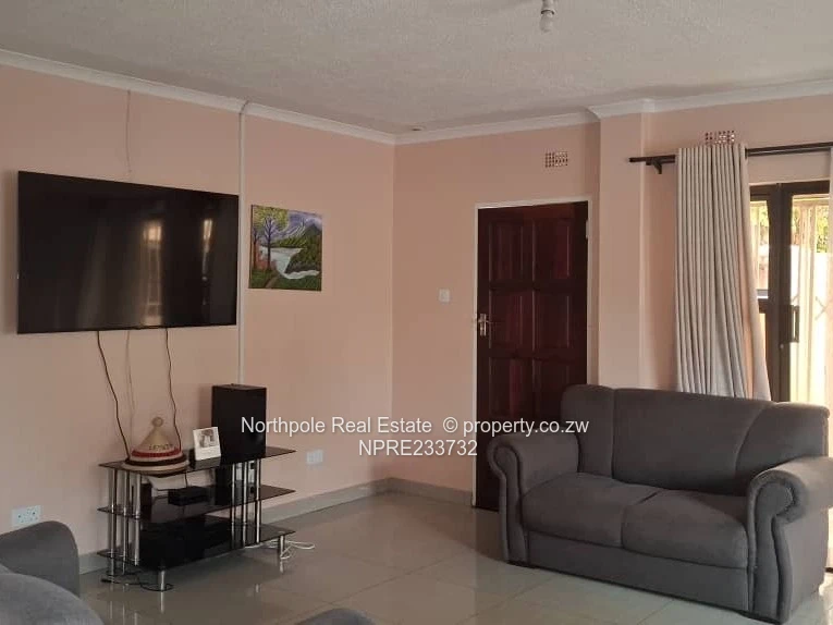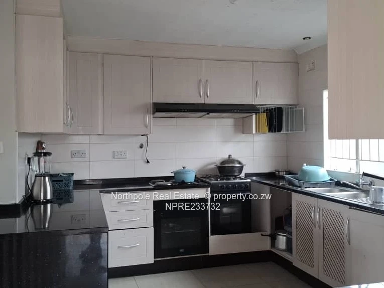 4Beds,ensuite, fitted kitchen, with stove,dining garage,walled &gated.Borehole.Solar wiring. Deposit equivalent to one month's rent required.