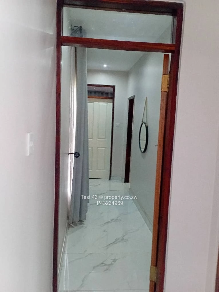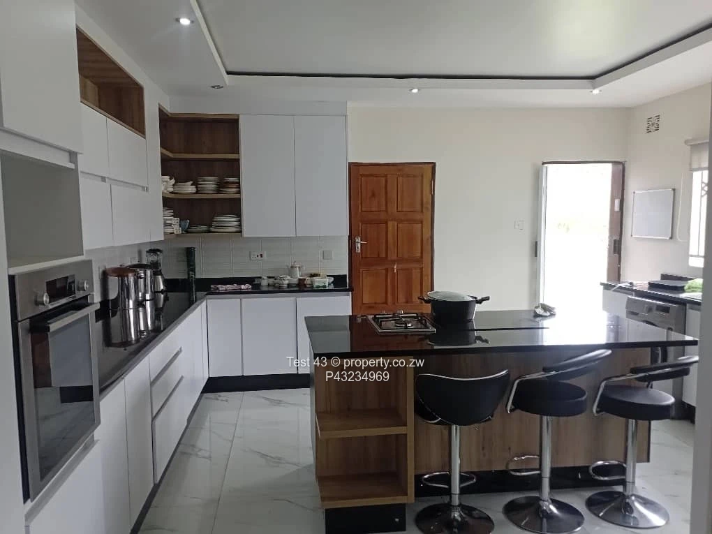 Luxurious 4-bedroom house to rent. Located in one of the prestigious suburbs along Chiremba road . All bedrooms have Bics, master with walk-in closet and ensuite. Modern fitted kitchen with state-of-the-art furnishings. 4 plate electric touch stove, 2 plate gas , Open plan spacious lounge and dining room. Neatly tiled and ceiling.Borehole water and backup tank. Solar geyser and Well maintained environment with well well-manicured lawn. Paved yard. Walled and gated. Electric gate, alarm system.