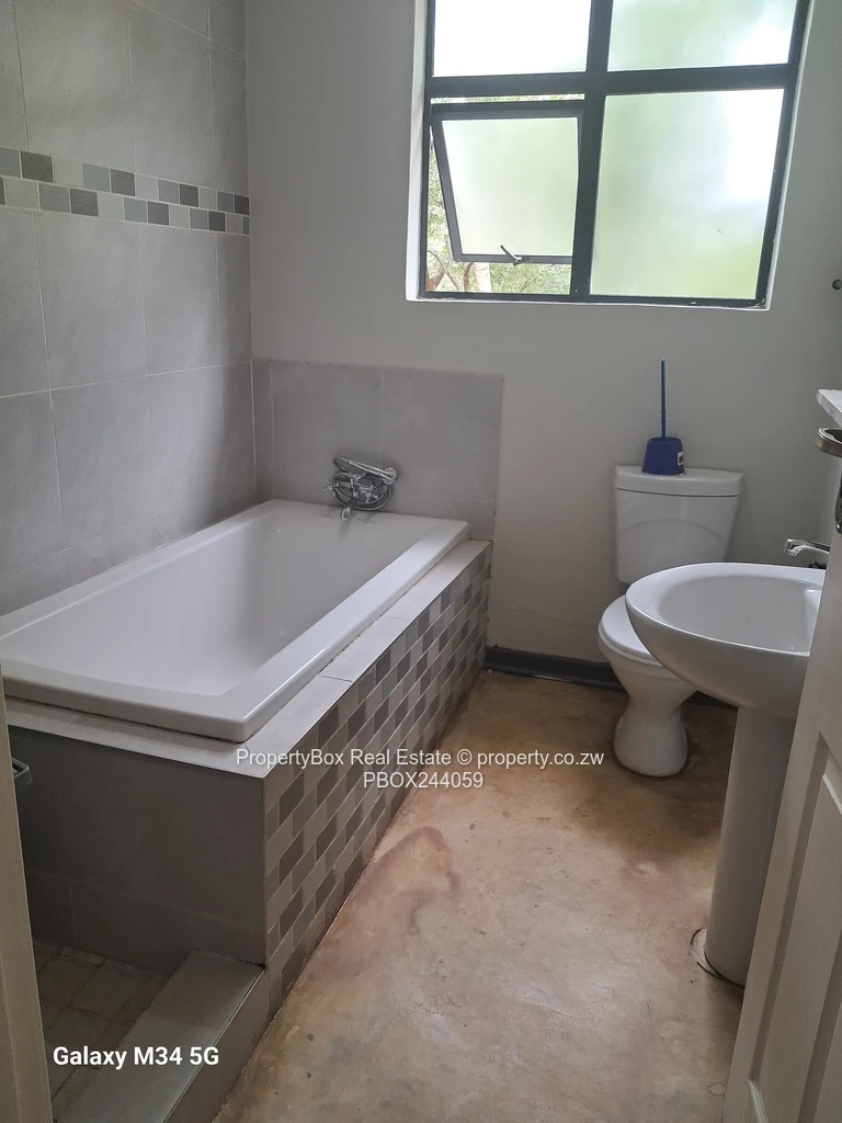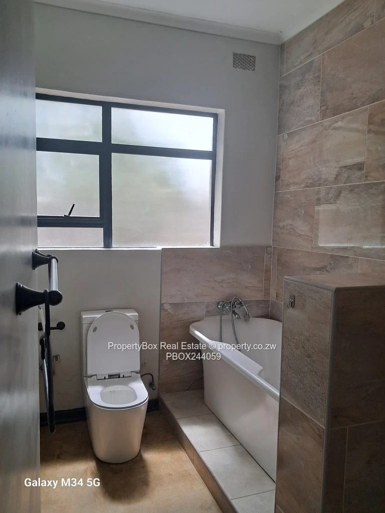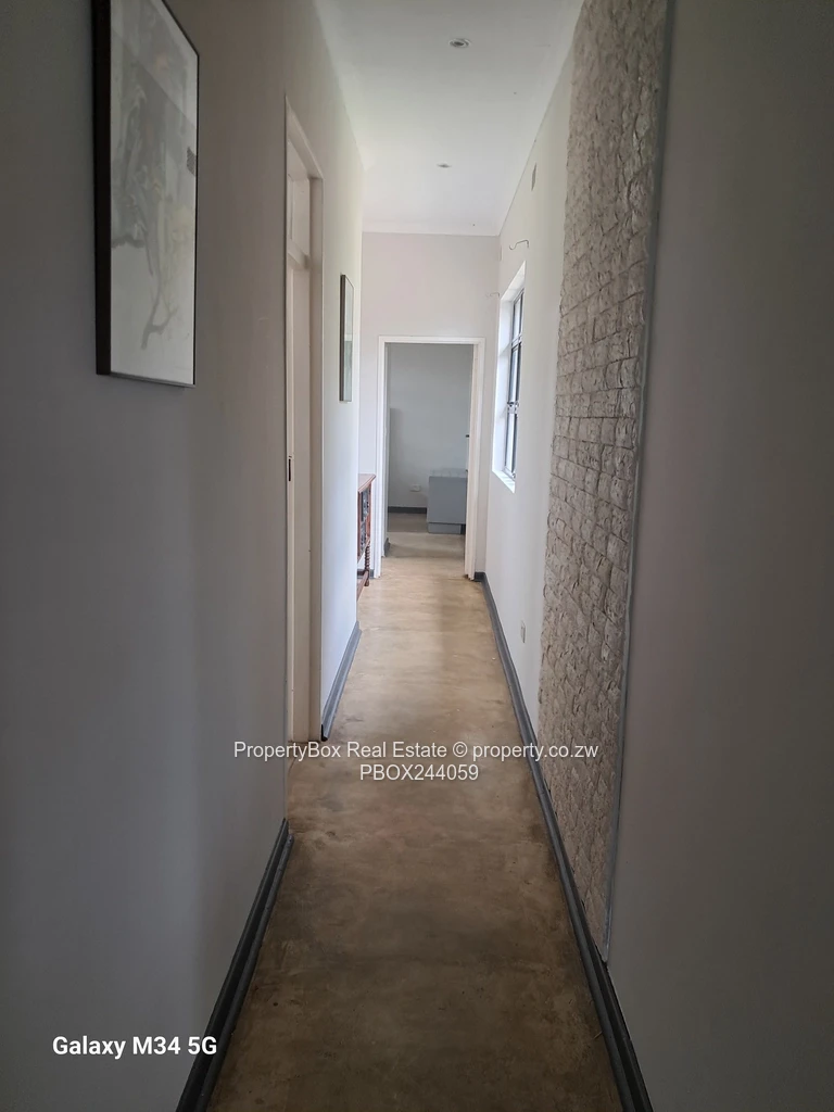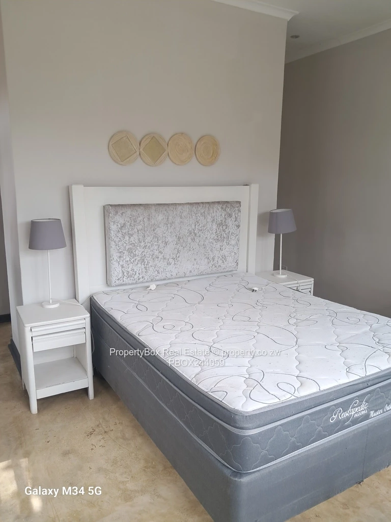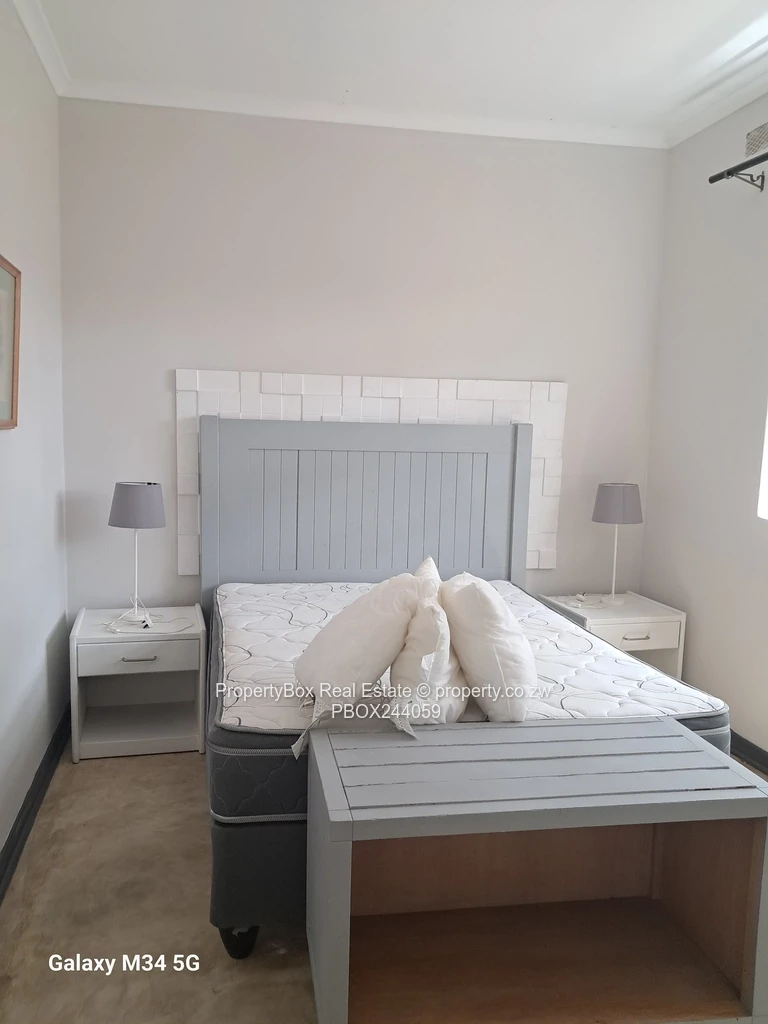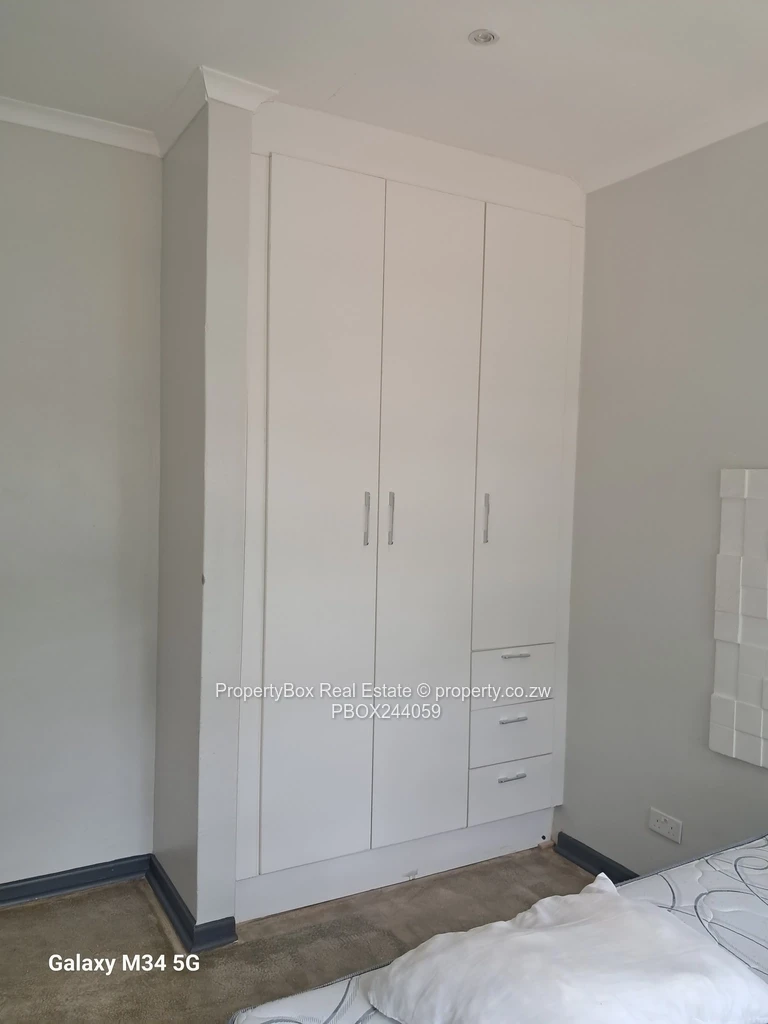 On offer is this fully furnished 4 bed house for immediate occupation, it comprises 4 bedrooms all with built-up cubboards, 3 ensuites with shower, tub, toliet and bath, lounge with kirtsy sofa suite, television set, Zol wi-fi connection , fitted kitchen with both electric and gas stove, scullery and laundry room, veranda overlooking a swimming pool, zesa connected, solar backup system, 1x 10 000l water tank, 1x 5000l water tank, walled and electic fence and gate, intercom, paved driveway, shared swimming pool, prolific borehole. A must view property as it comes with magnificient features for your relaxation. Own gate entrance. Contact us today for viewing