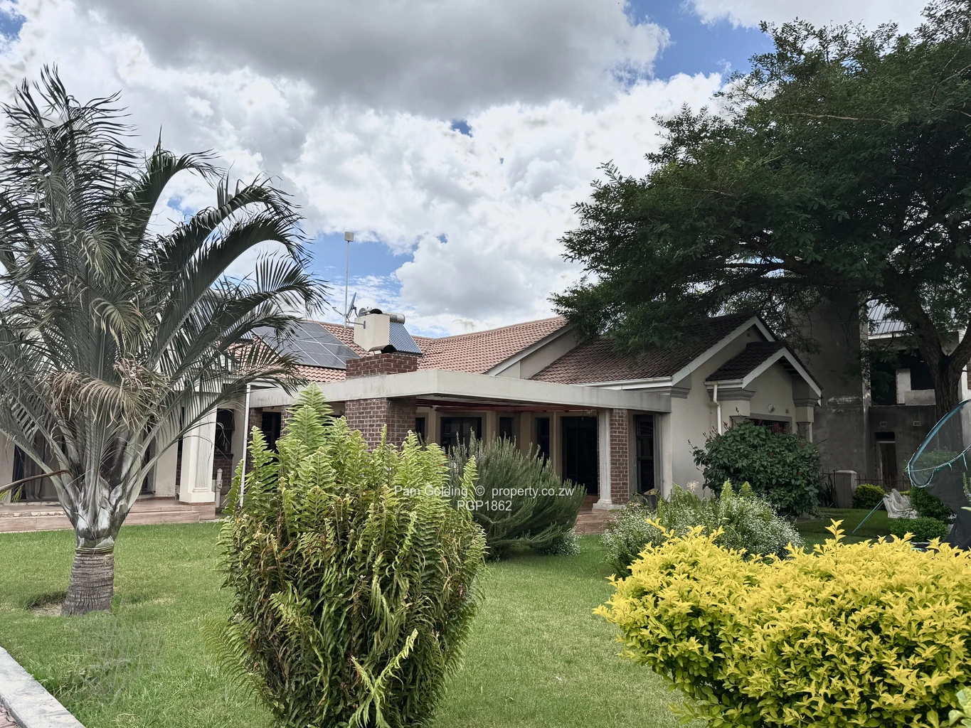 Additional features include a solar geyser, a double lock-up garage with storage space, a borehole, and a 5,000-litre water tank with a built-in storage area underneath.