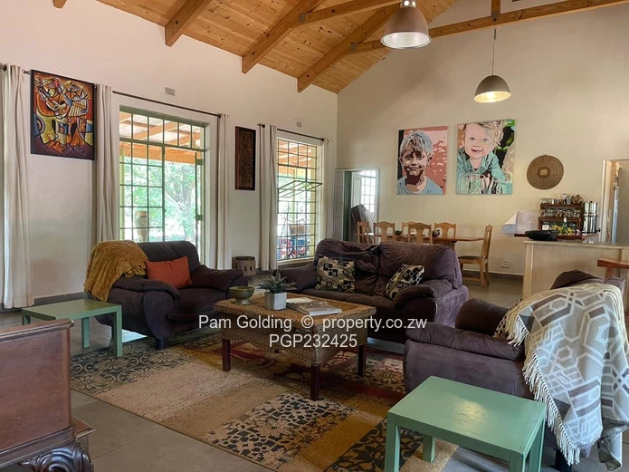 Set on a three-acre property in the heart of Highlands, this peaceful home offers wide open spaces, lush gardens and total privacy in a secluded, quiet spot. Perfect for families, small groups or working holidays. It has a blend of comfort, practicality and relaxed Zimbabwean charm.