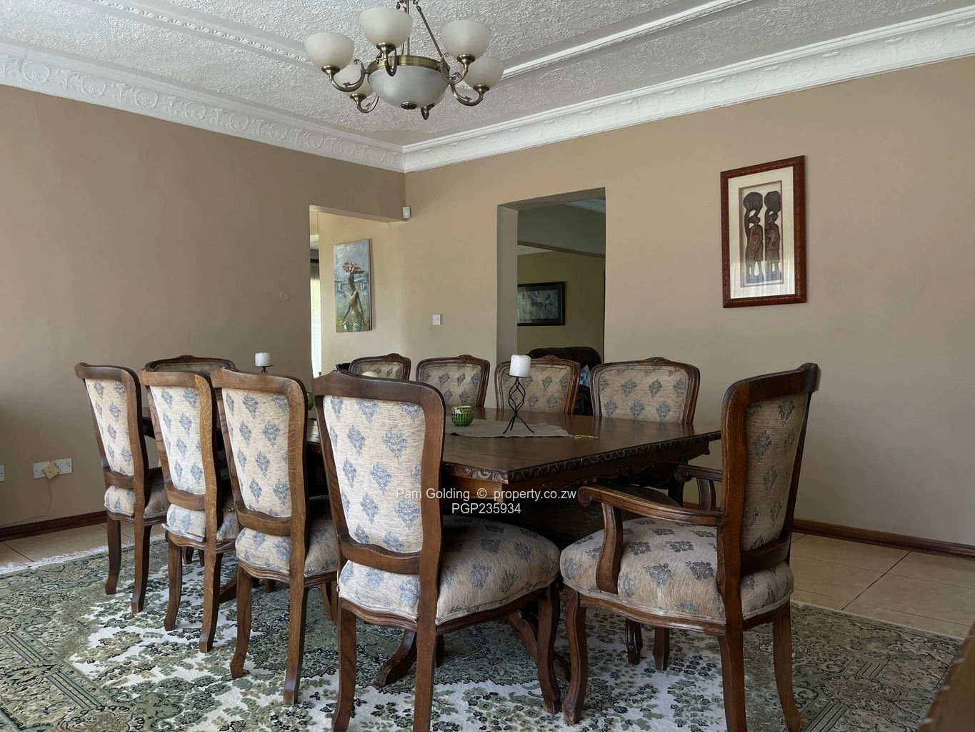 Discover this beautiful executive home nestled in the heart of Helensvale, Harare. This two-story residence is thoughtfully designed, offering five spacious bedrooms and four bathrooms. The home has three lounges, a large dining area and a fully equipped kitchen with granite countertops and ample storage space. The master bedroom has an en-suite bathroom with his and hers walk-in closets. Downstairs, there are three bedrooms that share a common bathroom and a fourth bedroom with its own en-suite bathroom. Additional features include a two-car garage, staff quarters/cottage, alarm system, electric fence, borehole and solar system.