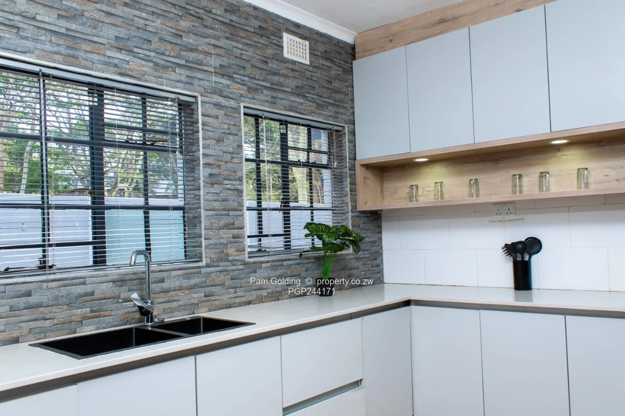 Additional features include a garage equipped with its own 5kVA backup system and a two bed staff quarters fitted with a solar geyser. The property is walled and gated, ensuring privacy and peace of mind.