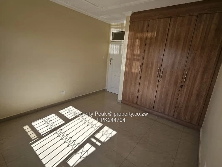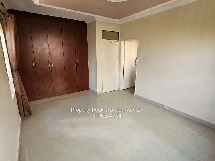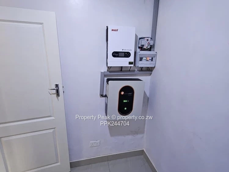 Spacious 4-bedroom, 3-bath family home for rent in Madokero, Harare West — perfect blend of comfort, security and low-maintenance. The exterior presents a neat brick-and-render finish behind a high boundary wall topped with electric fencing; the paved driveway leads to a single automated garage and additional parking. A visible roof-mounted water tank and solar panel complement an on-site borehole for dependable water supply.