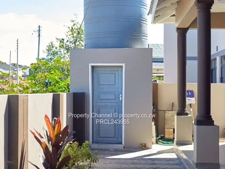 Charming fully furnished 3-bedroom, 2-bath home for rent in Arlington, Harare South — a neat 250 m² stand with 200 m² of comfortable living space. Immaculately presented exterior with paved driveway, low-maintenance garden beds and a roof-mounted solar water heater visible on the ridge. Inside, each bedroom is thoughtfully styled: plush headboards, bedside tables and crisp linens create a restful vibe, while the master features extensive built-in wardrobes and tiled floors for easy upkeep. The contemporary kitchen shown is fitted with sleek cabinetry, granite-look counters, an integrated oven and hob, extractor, microwave and a breakfast bar with stools — perfect for casual dining and entertaining. Two modern bathrooms, reliable communal borehole water supply and full furnishings make this a true move-in ready option for professionals or a small family seeking comfort and convenience in a quiet Arlington neighbourhood. Arrange a viewing today to experience the quality finishes and practical layout firsthand.