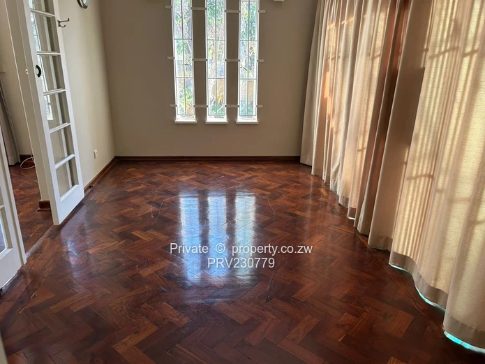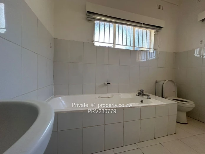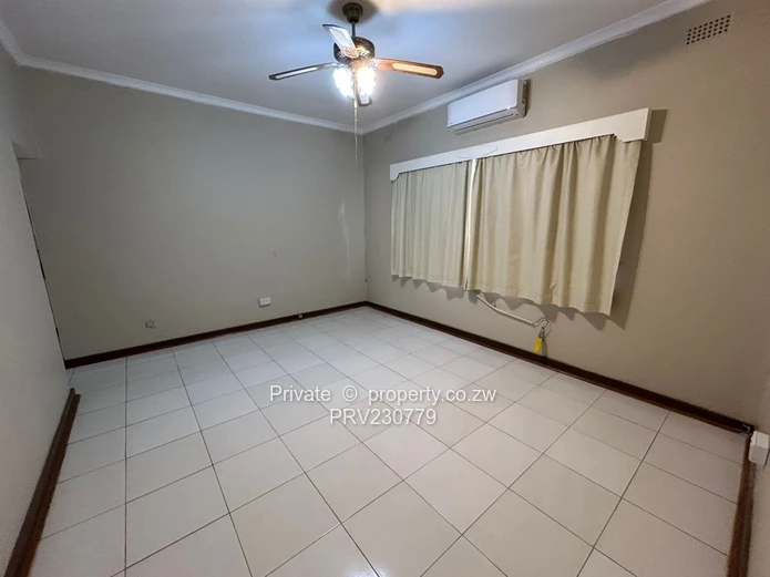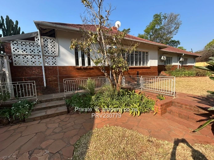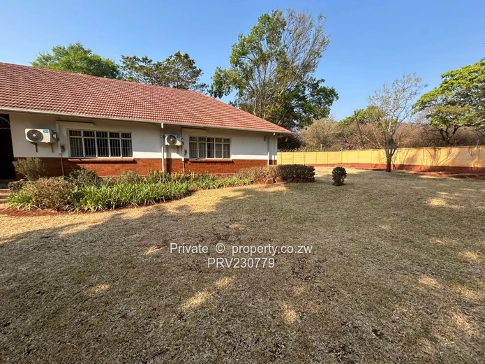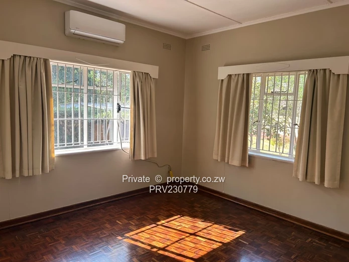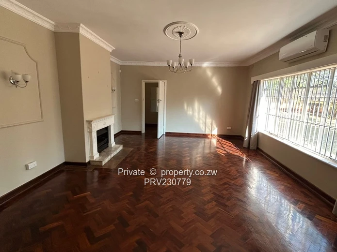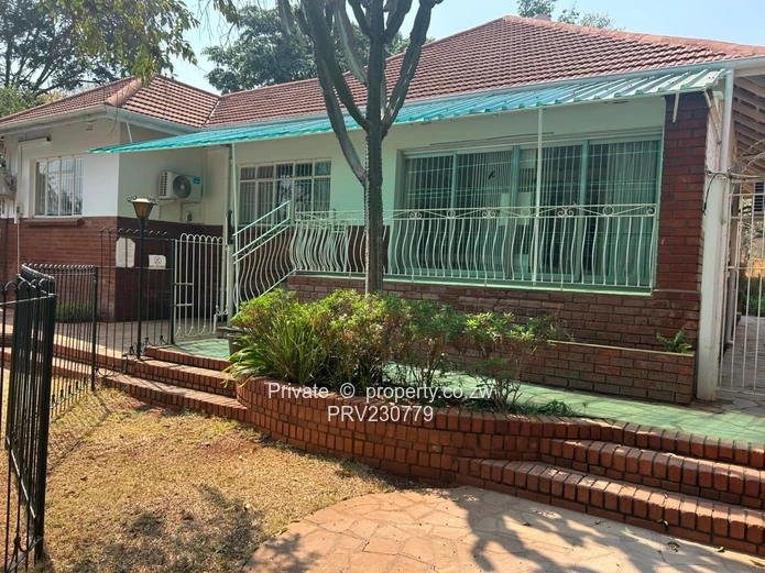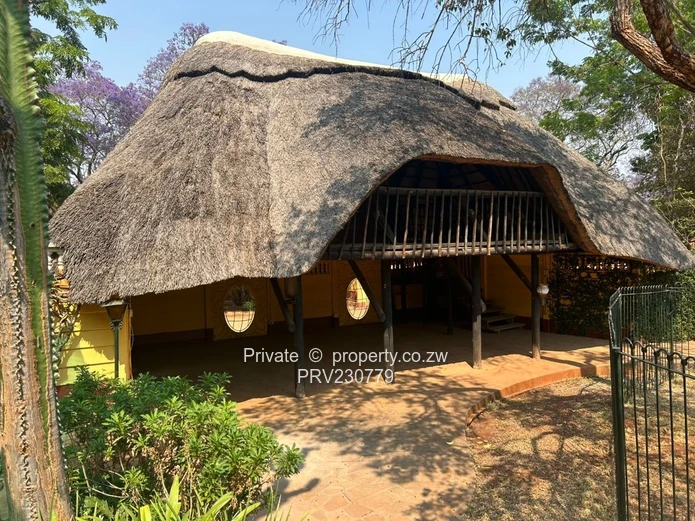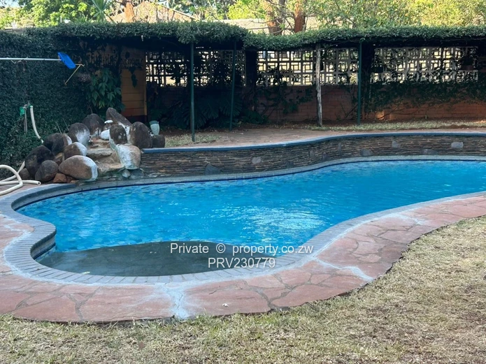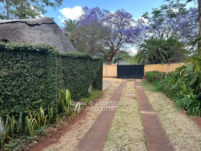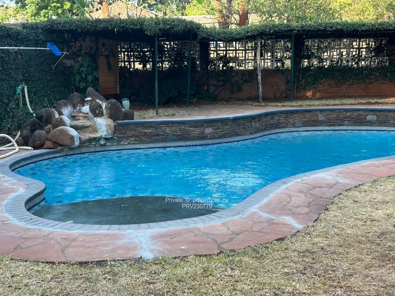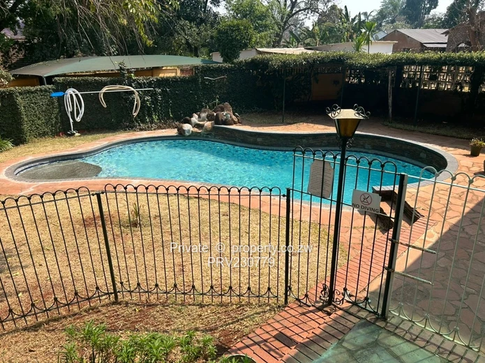 Alexandra Park: Located in this sought after area this house on a street corner is suitable for commercial or residential. The neighborhood has a large number of embassies, hospitals, shops and sports venues. Offering 5 bedrooms, 4 bathrooms, 2 lounges, fire place, dining, modern fitted kitchen, scullery, UN standard physical security features, safe haven, solar geysers, and air conditioners in all rooms. All bedrooms with BICs. Main bedroom has a large walk in dressing area. Outside is a sparkling chip tile swimming pool with a double story thatched gazebo overlooking it, perfect for entertaining and meetings. 3 roomed servants quarters, 2 water tanks, guard room, borehole, walled and electric gated with razor wire all round, a must see. Rental $3200 per month.