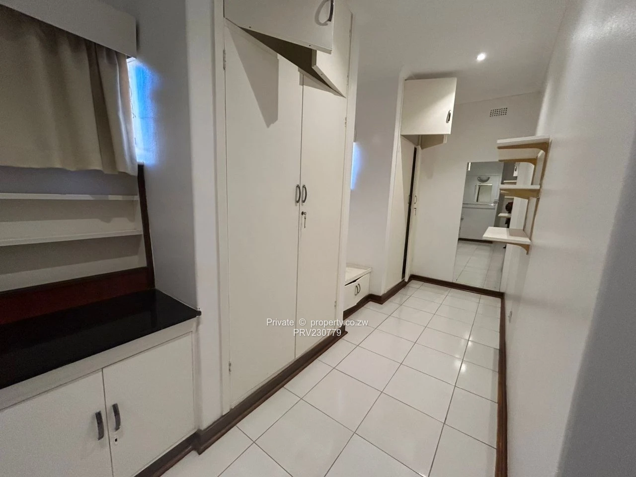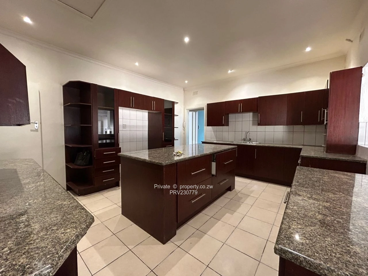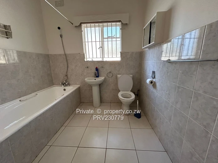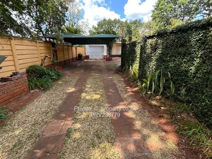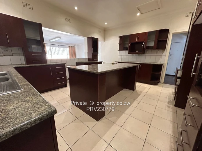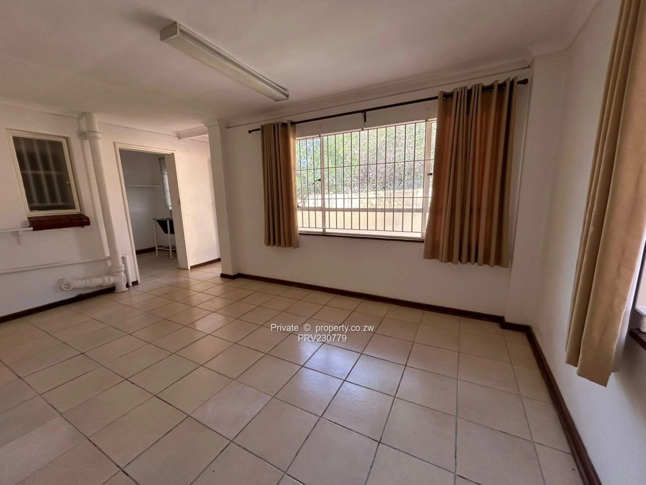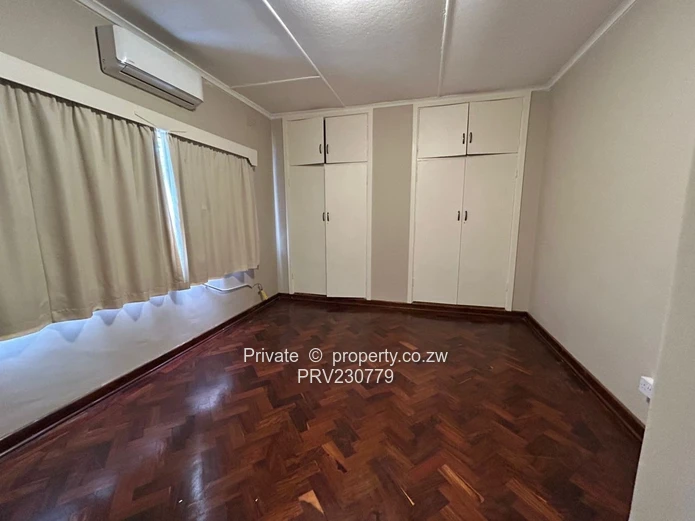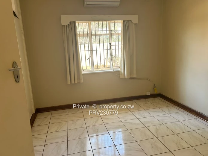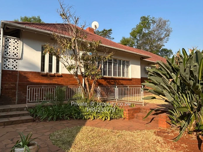 Alexandra Park: Located in this sought after area this house on a street corner is suitable for commercial or residential. The neighborhood has a large number of embassies, hospitals, shops and sports venues. Offering 5 bedrooms, 4 bathrooms, 2 lounges, fire place, dining, modern fitted kitchen, scullery, UN standard physical security features, safe haven, solar geysers, and air conditioners in all rooms. All bedrooms with BICs. Main bedroom has a large walk in dressing area. Outside is a sparkling chip tile swimming pool with a double story thatched gazebo overlooking it, perfect for entertaining and meetings. 3 roomed servants quarters, 2 water tanks, guard room, borehole, walled and electric gated with razor wire all round, a must see. Rental $3200 per month.
