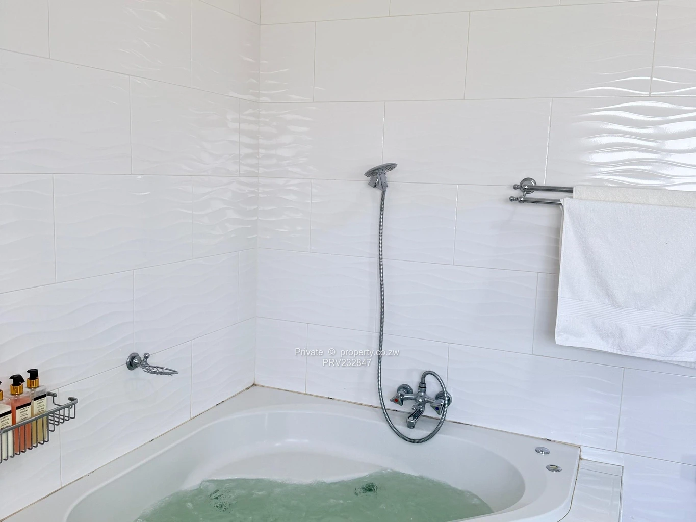 3 stylish bathrooms, each featuring both a bathtub and shower, including two jacuzzis and a massage shower.