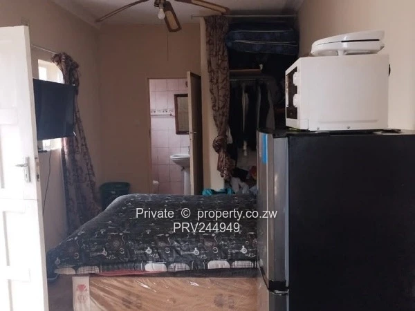 Guestroom- one Large room with ensuite and BiC. Kitchen corner with sink, overhead Fan, Borehole water, night security system with sensor and siren.