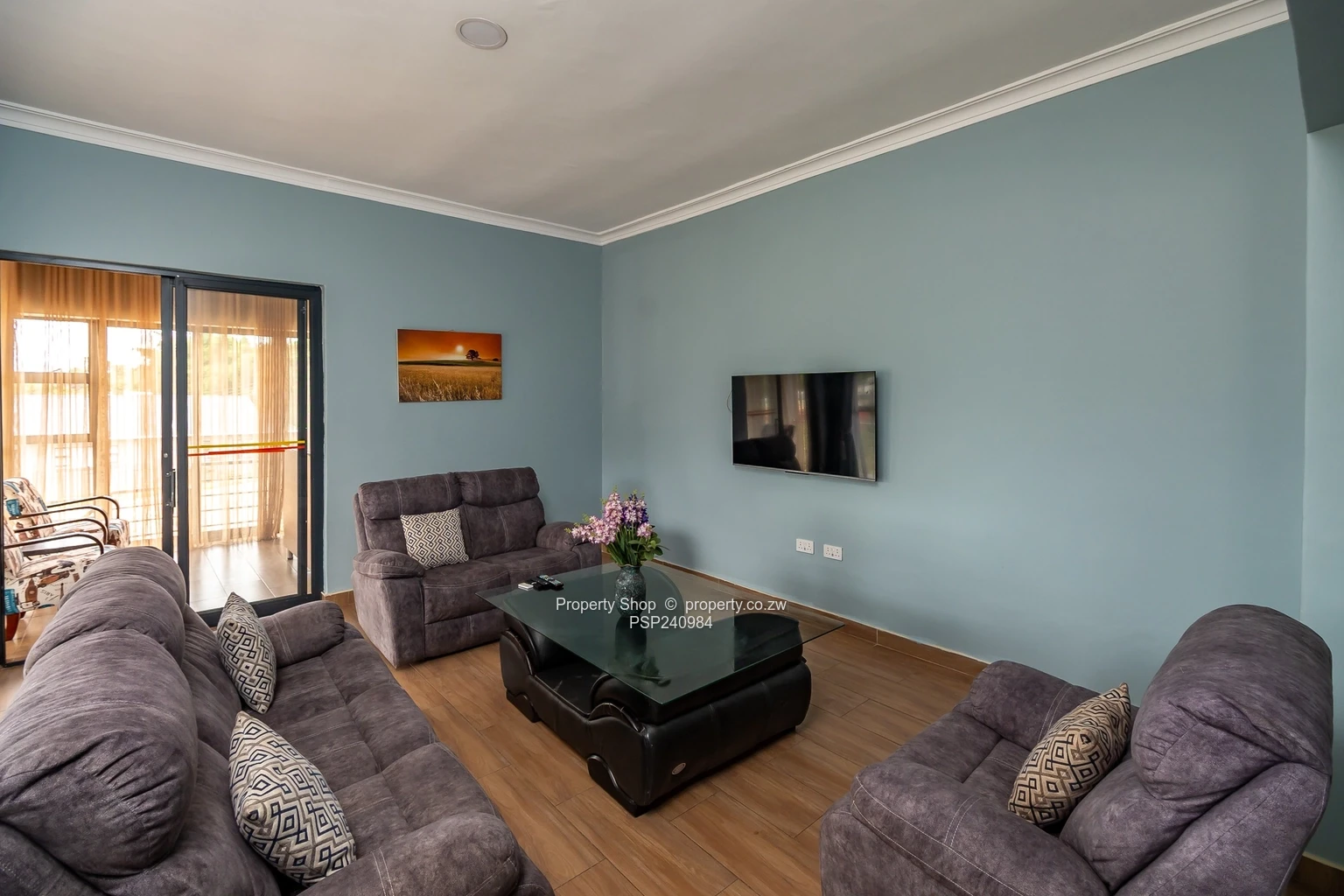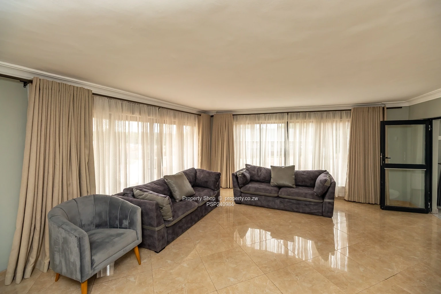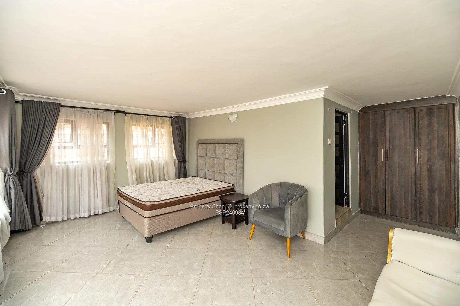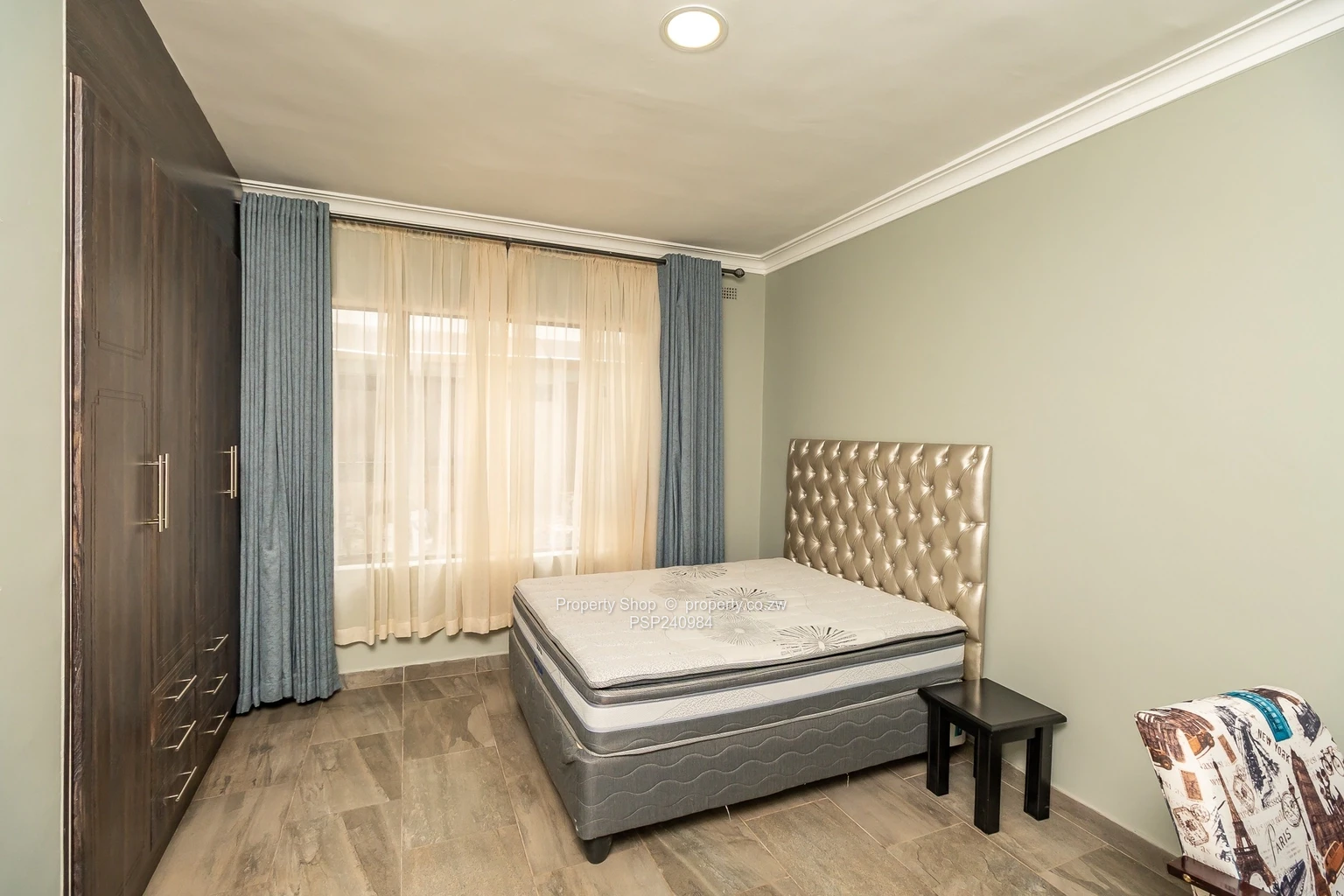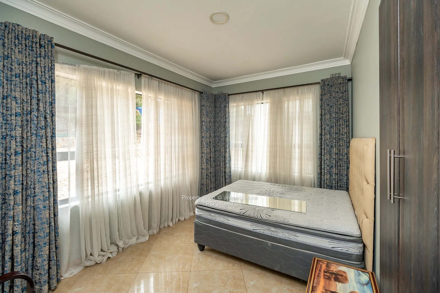 Property Shop proudly presents this massive, modern property ideally located on Harare Drive, in Colray Valley. It is located in a gated community but on more one acre piece of land making it feel like a stand-alone house. It comes fully furnished.