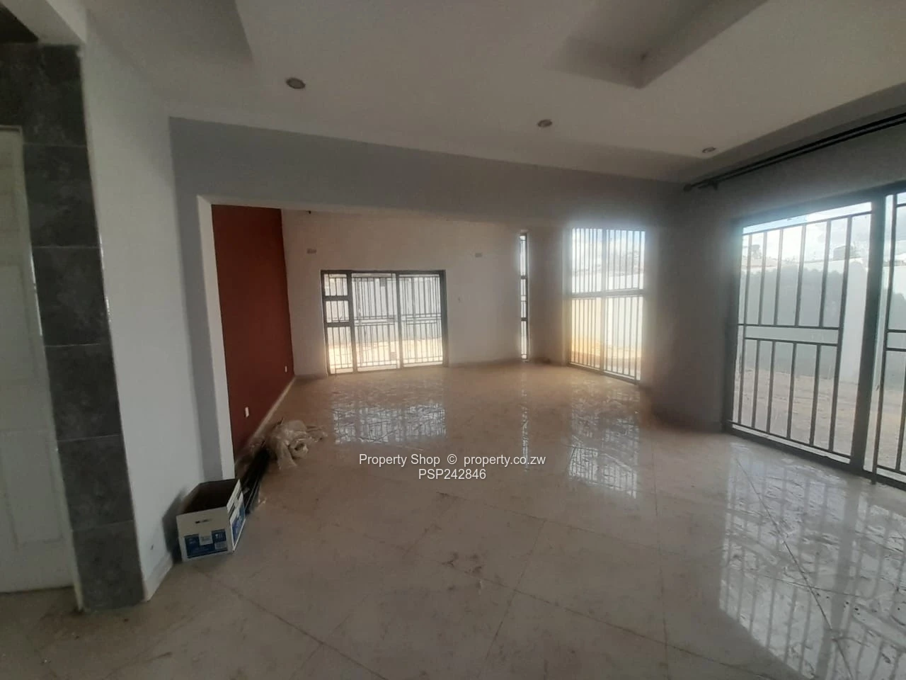 Fresh on the market in Damofalls — modern 4-bedroom, 2-bathroom house for rent on a secure 400 m² stand with 120 m² of smartly finished living space. Rent plus deposit required. The property is fully walled with a solid entrance gate and garage with roller door, offering secure parking. Exterior brick detailing and a tiled roof add curb appeal; the yard features a high-level water tank on a tower for reliable supply. Interior shows glossy tiled floors, bright open-plan living areas with ample natural light and built-in storage, plus a fitted kitchen ready for use. The main bedroom includes an en suite bathroom for privacy. Practical, low-maintenance compound with side access and room for small garden or kids’ play area. Ideal for families or professionals seeking comfort and security in Mashonaland East’s Damofalls. Viewings by appointment.