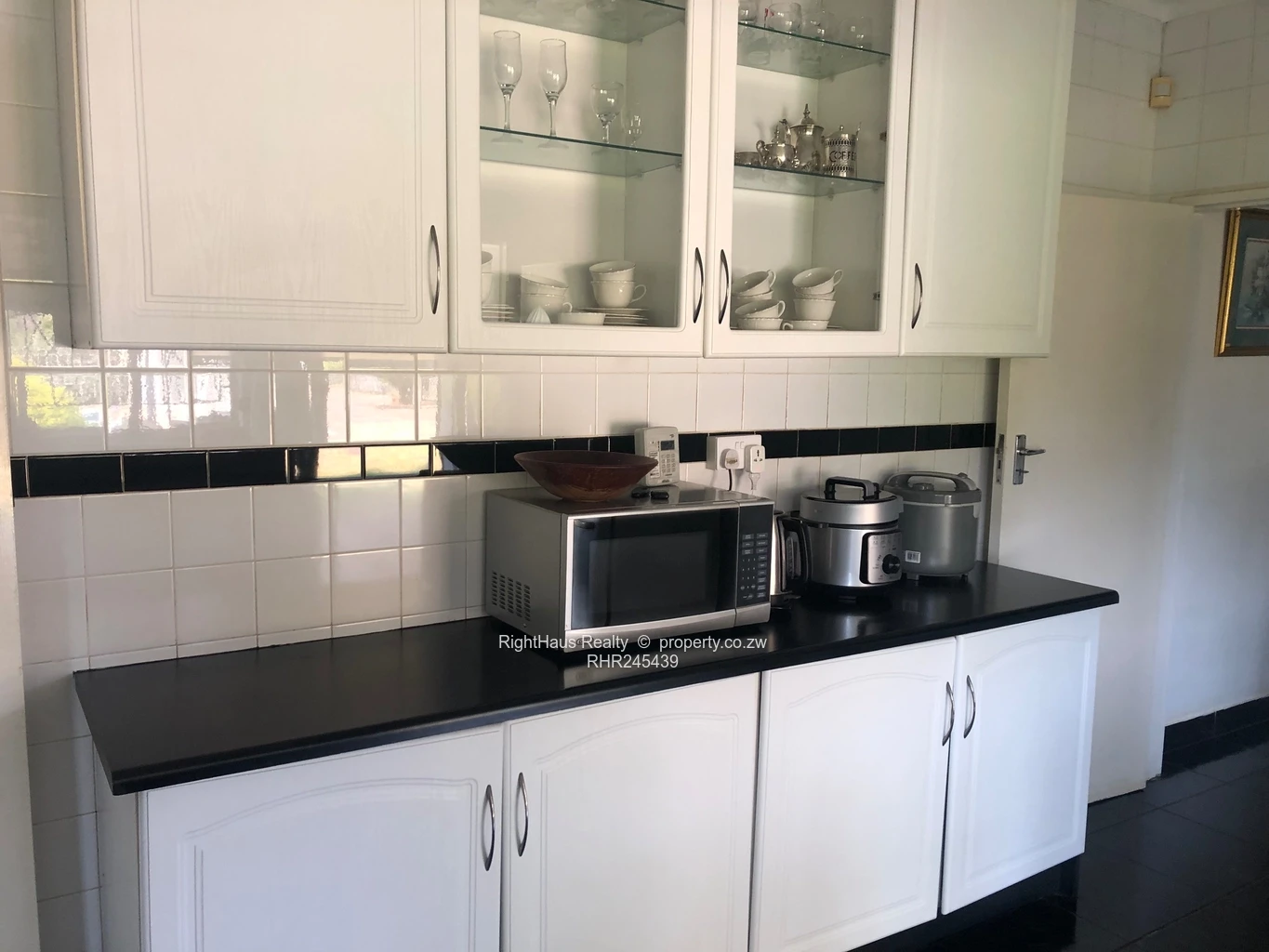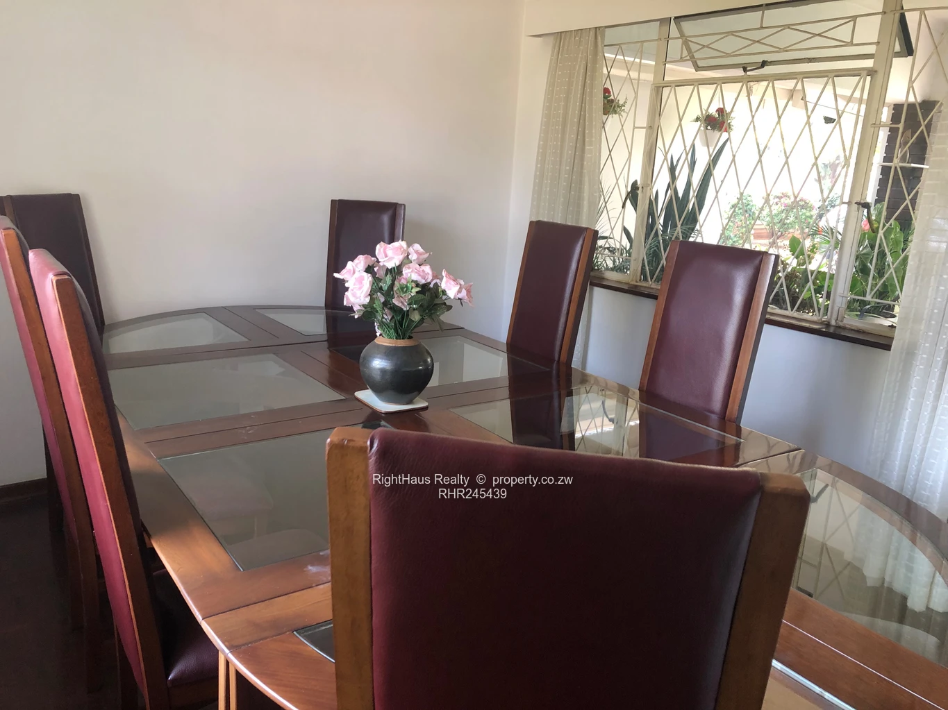 Lovely fully furnished 4 bedroom house with a fitted kitchen, a lounge and a dinning room. The house is serviced and comes with a maid and gardener. There is a solar system and a borehole for backup.