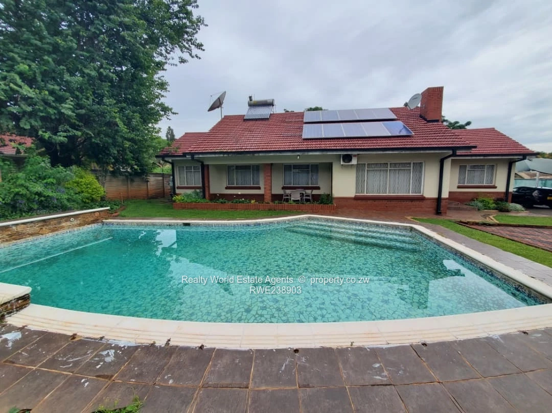 This property presents an exceptional opportunity for either spacious family living or professional commercial use. The home features 5 comfortable beds, with the main suite offering an ensuite bathroom and walk-in closet, and all beds equipped with built-in cupboards. Lounge with a fireplace, a separate dining room, and a functional kitchen, and full family bathroom. Outdoor space is enhanced by a functional swimming pool. Solar backup, borehole and water tank. Single lock up garage.