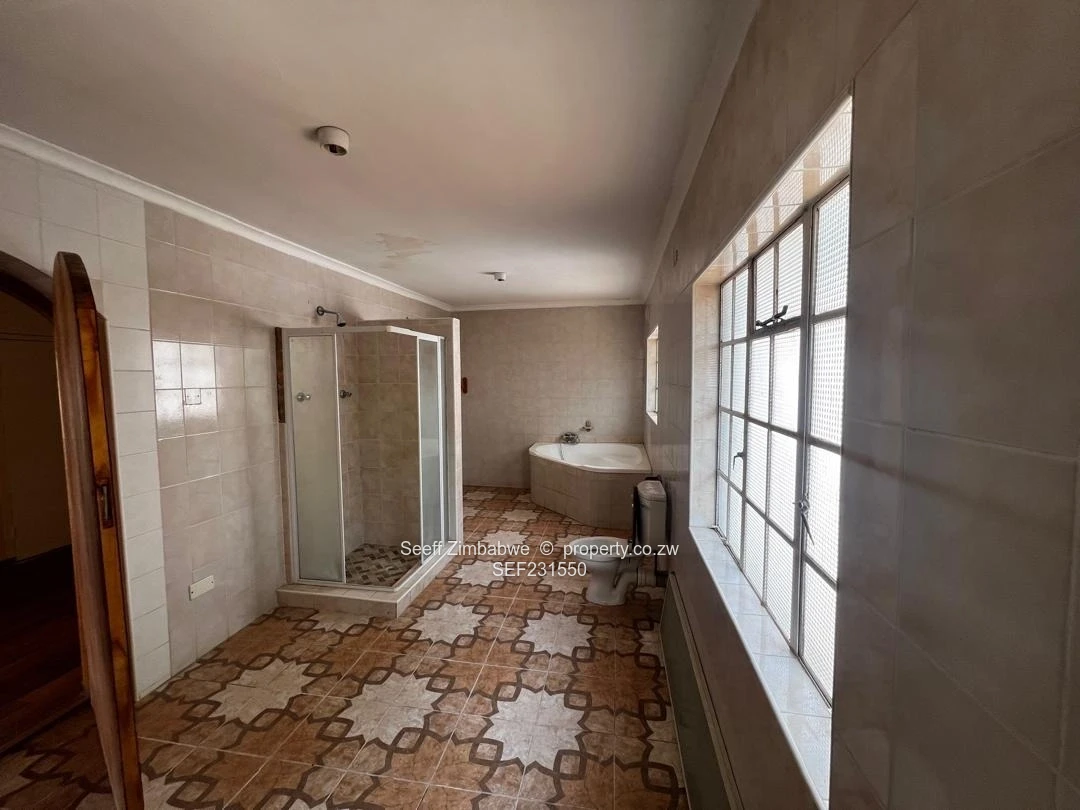 This is a spacious, modern four-bedroom, double-story residence boasting high-quality finishes and excellent off-grid amenities, complete with a single lock-up garage and dedicated staff quarters. Four En-Suite Bedrooms: Three bedrooms on the ground floor, he Master Suite encompasses an open-plan lounge/office area, a full en-suite (tub and separate shower), and access to a stone-tiled balcony. two distinct lounges and here is also a separate dining room and a Study, a kitchen with scullery with a double sink, and a shelved pantry. borehole, 5000L water storage tank, two solar geysers, and a 5kVA solar backup system. Outside lighting and a dedicated laundry/ironing room
