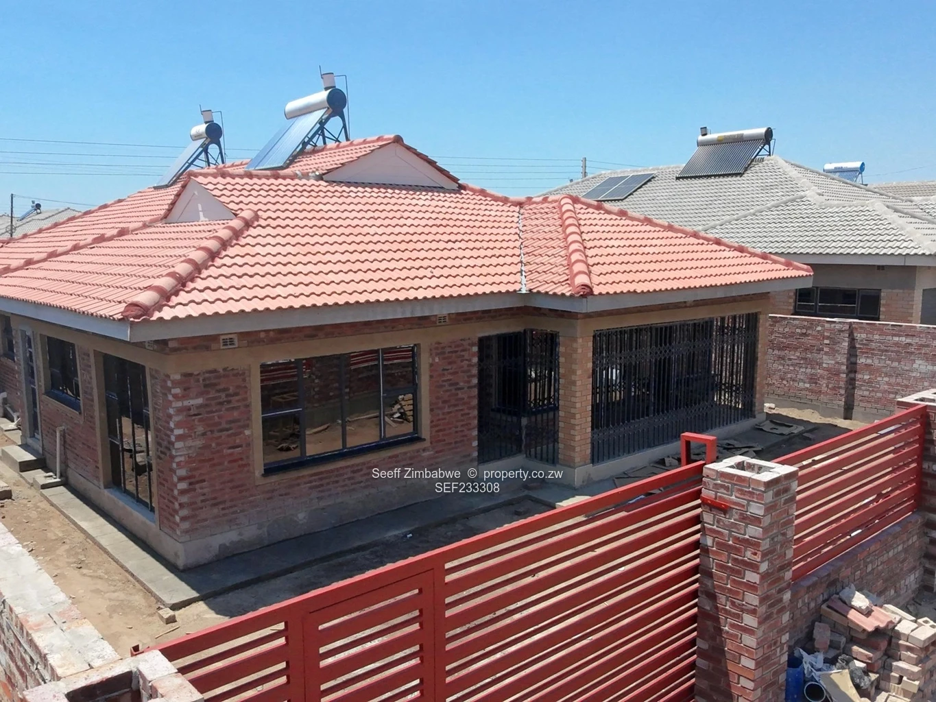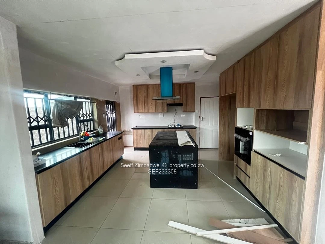 This elegant 4-bedroom home features a spacious open-plan lounge and kitchen with fitted units, a centre island with stove and extractor fan, gas stove, and built-in oven. The lounge opens through sliding doors to the outside, creating a light-filled living area. Bedrooms 1 and 2 are tiled with built-in cupboards, while Bedroom 3 includes the same features plus a private en-suite with a shower cubicle, sink, and toilet. The main bedroom offers a walk-in closet, luxurious en-suite with tub and shower, and sliding door access to the outdoors. Additional features include a family bathroom with tub, shower, and sink, a borehole with water tank, solar geyser, screen doors, and secure walling with a gate — combining comfort, style, and convenience for the modern family.