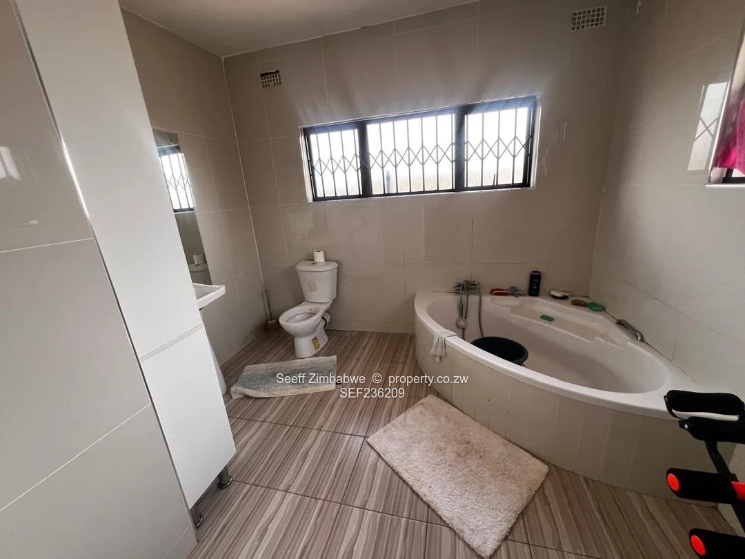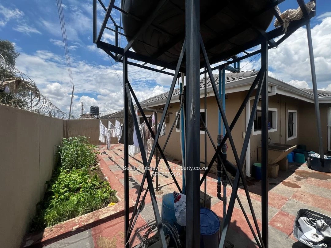 This well-maintained and secure property offers a comfortable family living experience, featuring a fully paved exterior, gated entrance with electric gate, razor wire, CCTV, rapid response, outside lighting, and a car shed for one vehicle. The home is serviced by a borehole, water tank, double outside sink, solar system, solar geyser, and WiFi connections, ensuring convenience and efficiency.