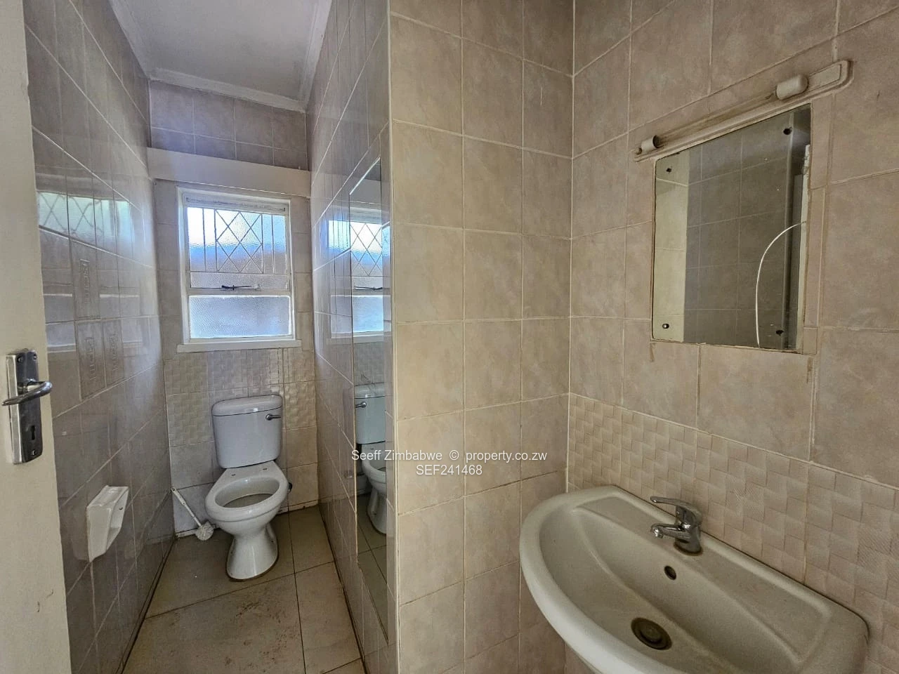 There are three tiled bedrooms, all with built-in cupboards. The property also includes a separate toilet with a sink basin and a family bathroom fitted with a tub, pan and seat, and sink basin.